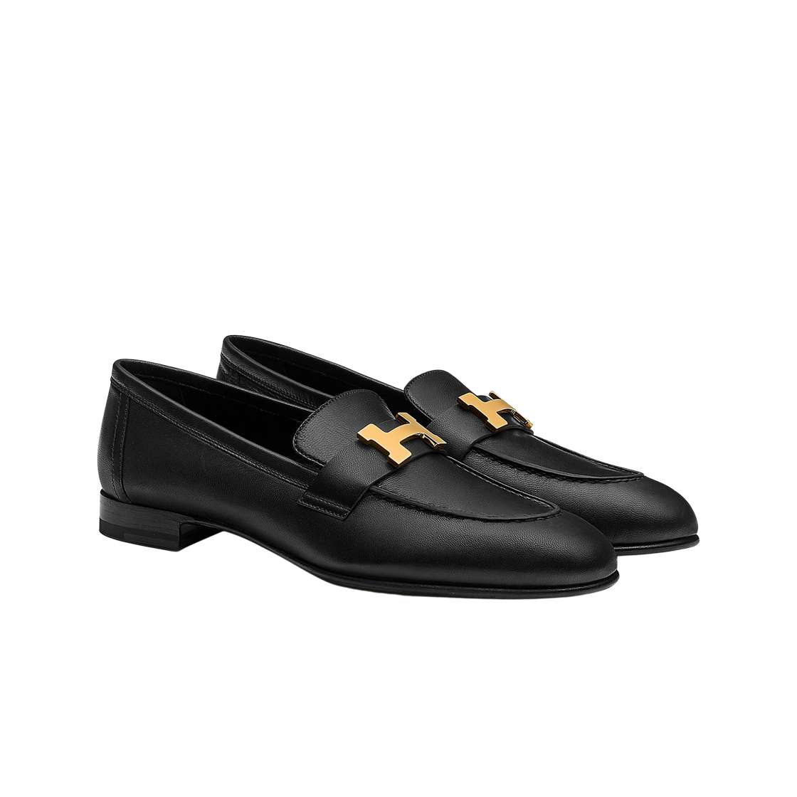 (W) Hermes Paris Loafers Goatskin & Permabrass Noir
