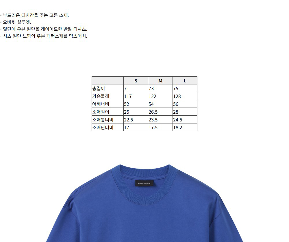 커스텀멜로우 레이어드 반팔 티셔츠 블루