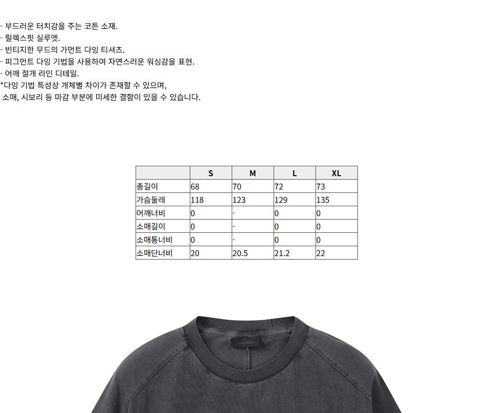 커스텀멜로우 가먼트 다이드 반팔 티셔츠 그레이