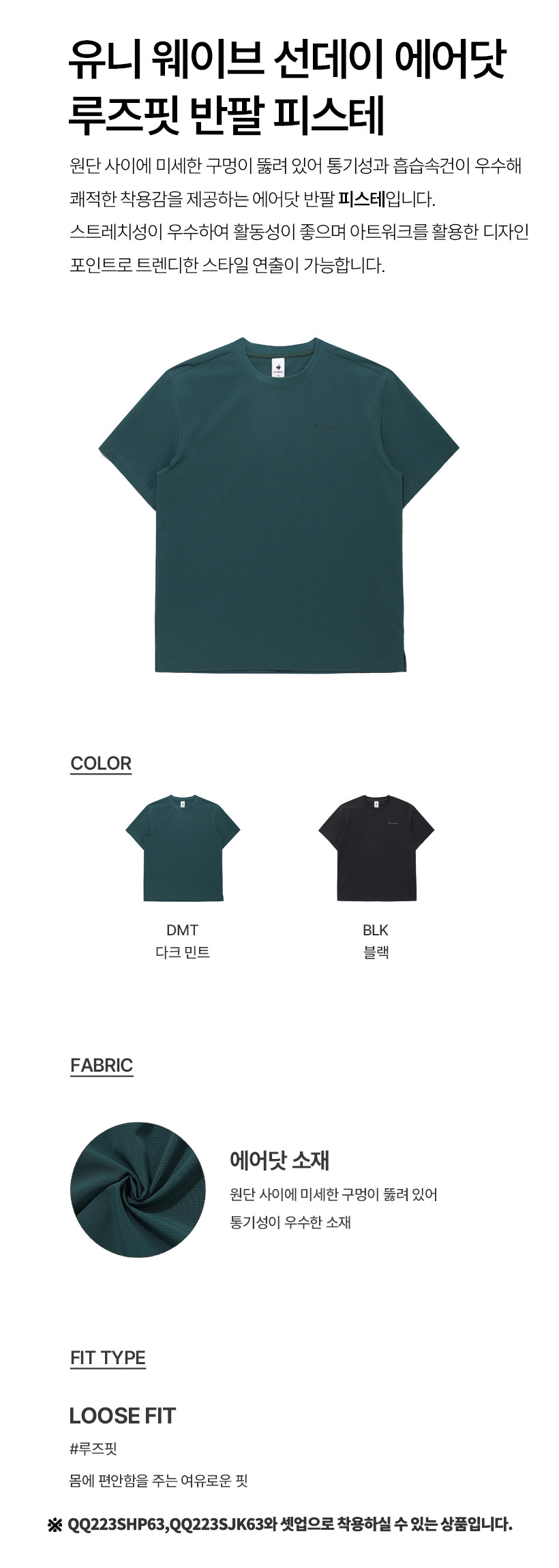 르꼬끄 스포르티브 유니 웨이브 선데이 에어닷 루즈핏 반팔 피스테 - 블랙(QQ223SWT63)