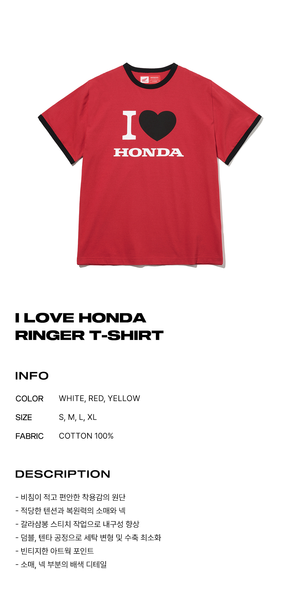 혼다 아이 러브 혼다 링거 티셔츠 레드