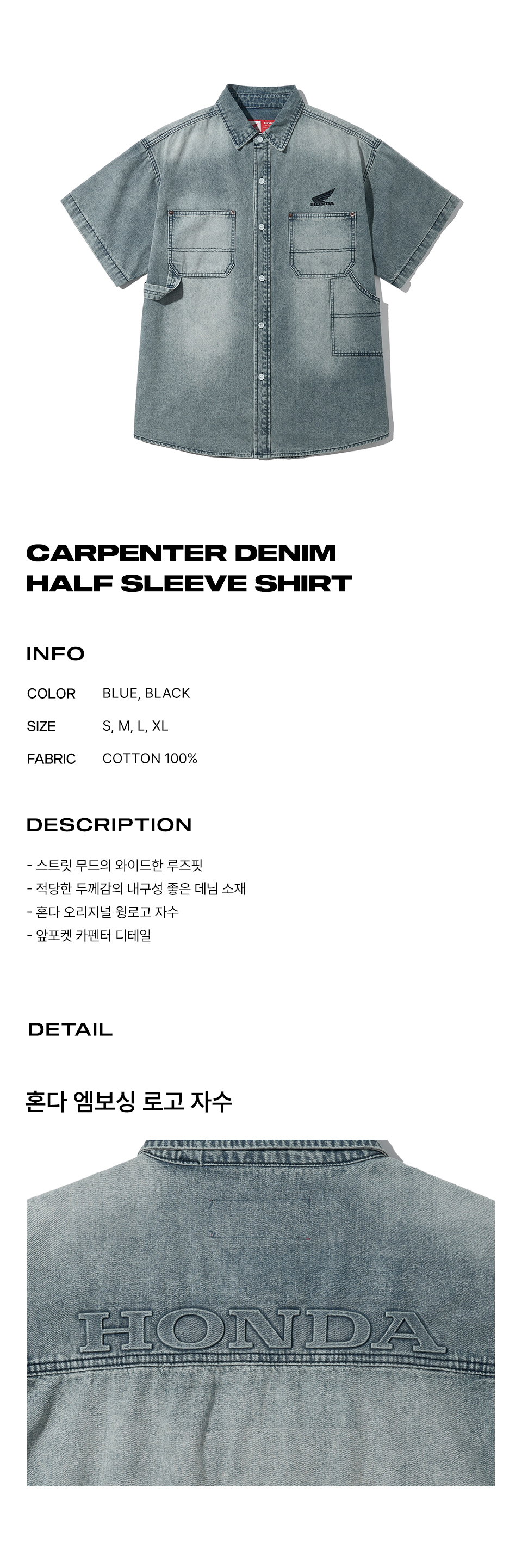 혼다 데님 카펜터 하프 슬리브 셔츠 블루