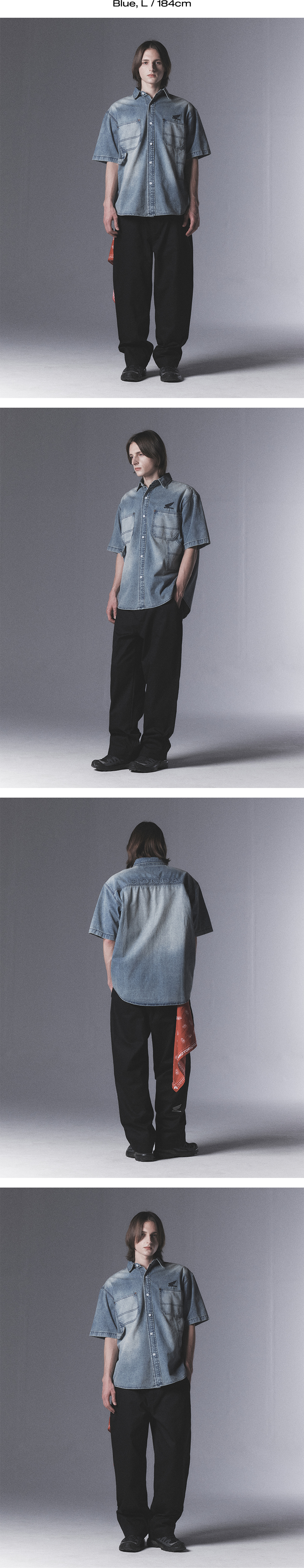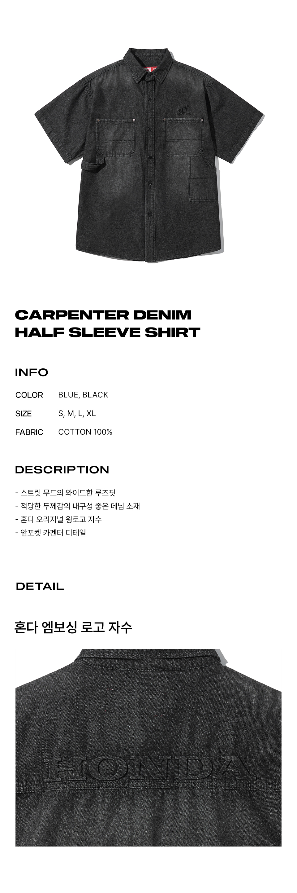 혼다 데님 카펜터 하프 슬리브 셔츠 블랙