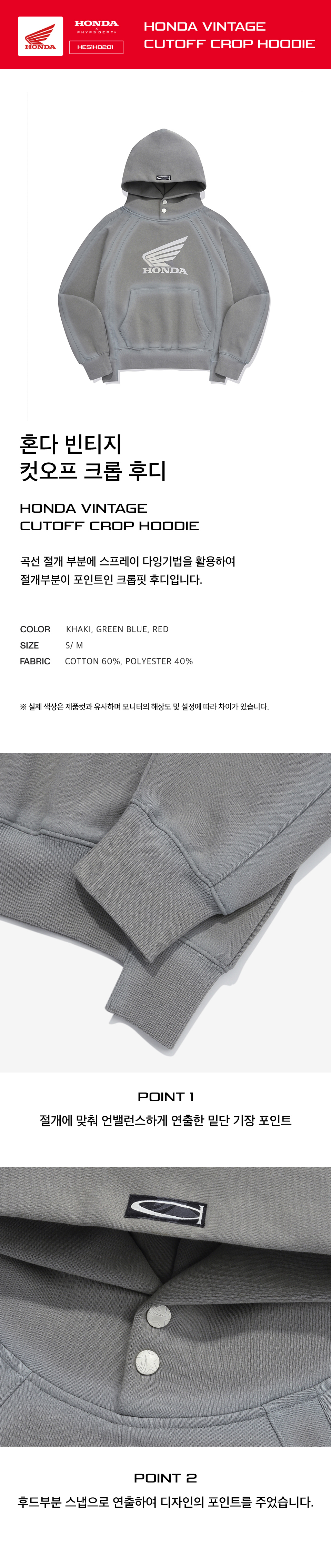 혼다 빈티지 컷오프 크롭 후디 스프레이 카키