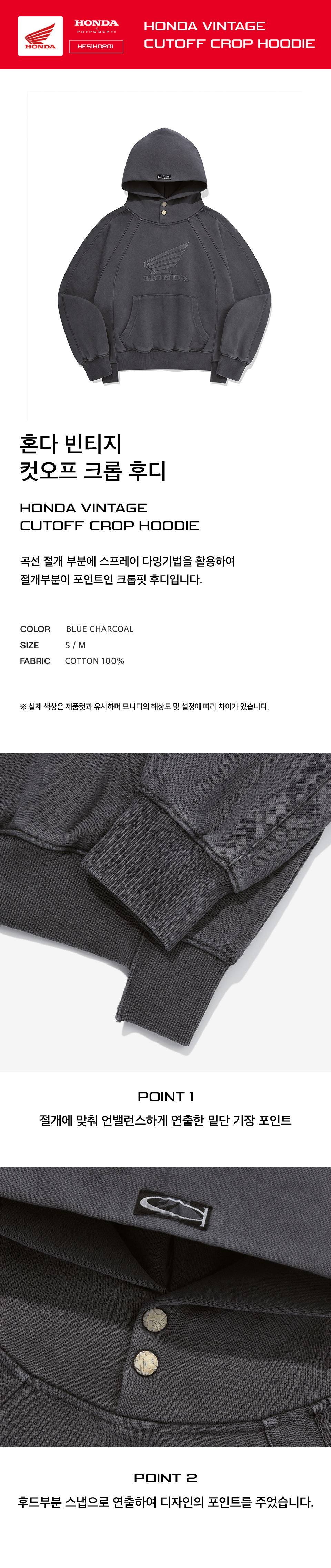 혼다 빈티지 컷오프 크롭 후디 PG 블루 차콜