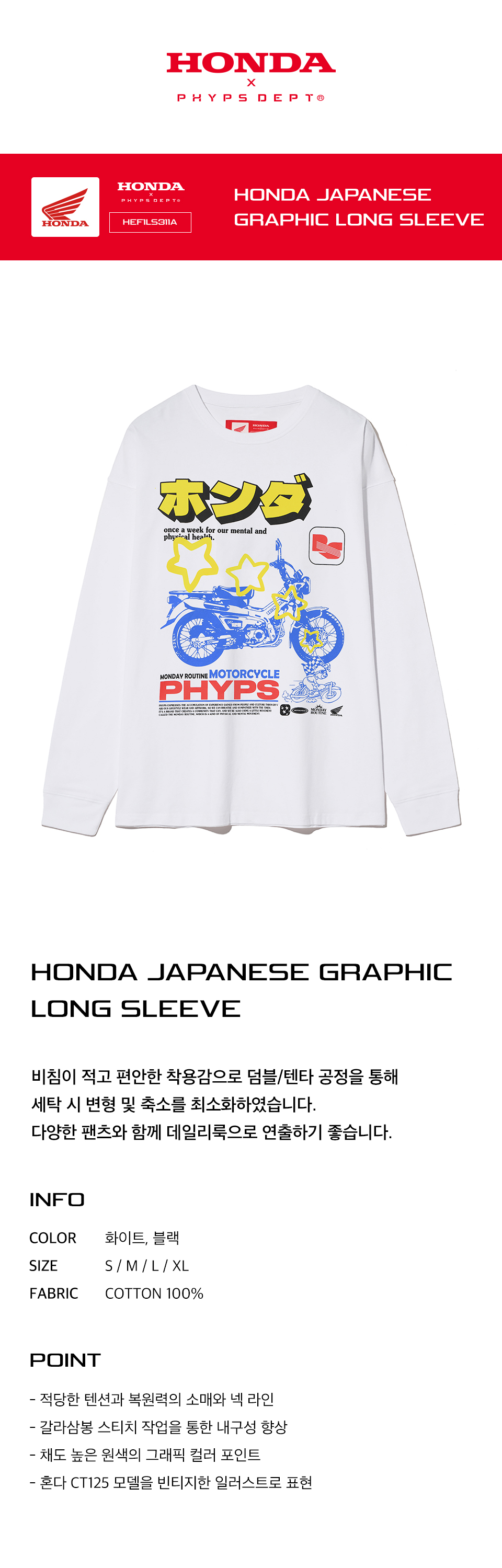 혼다 재패니즈 CT 125 롱 슬리브 화이트