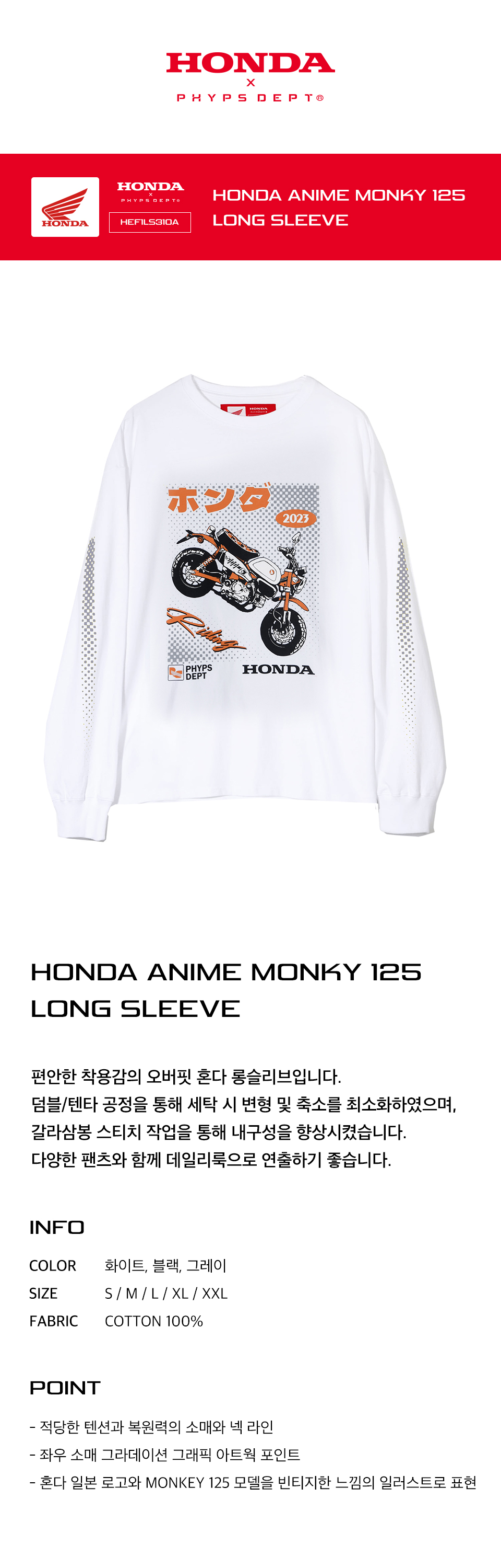 혼다 아니메 Monky 125 롱 슬리브 화이트