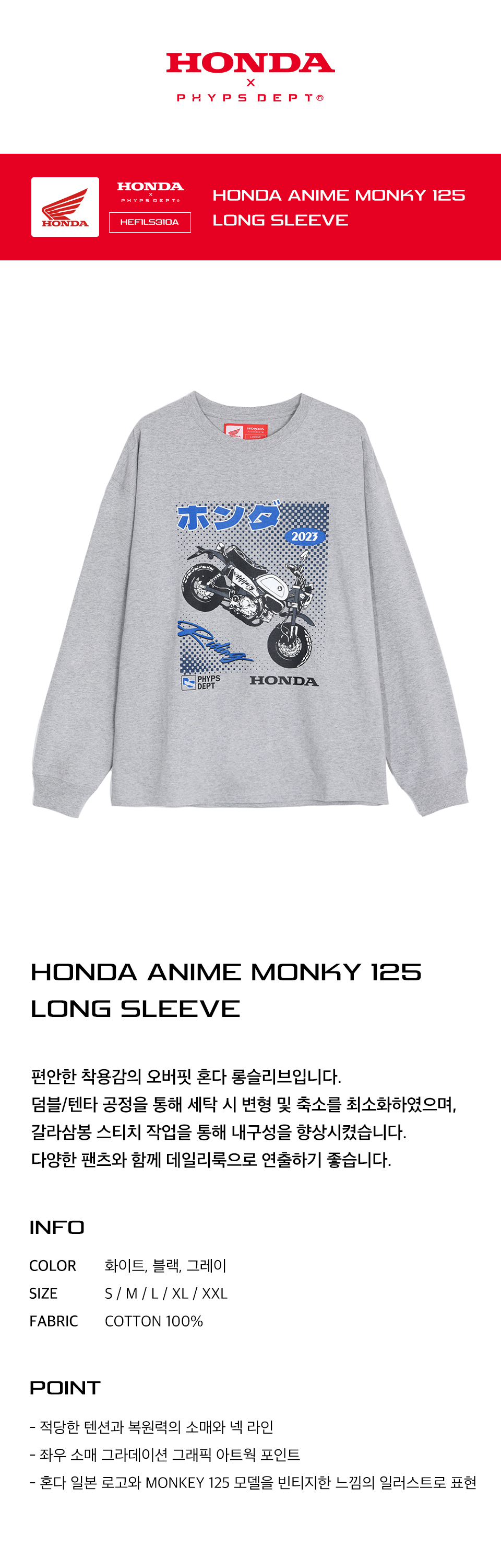 혼다 아니메 Monky 125 롱 슬리브 그레이