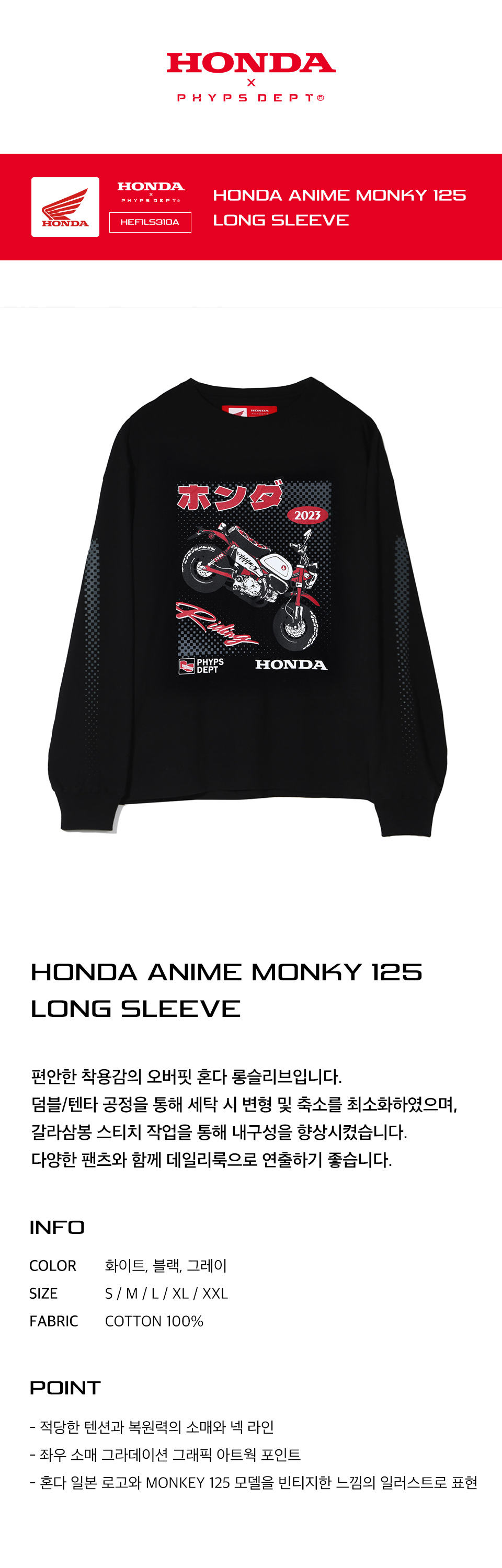 혼다 아니메 Monky 125 롱 슬리브 블랙