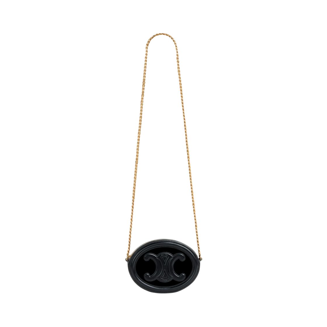 셀린느 벨벳 & 카프스킨 크로스바디 체인 오발 퍼스 레더 트리옹프 블랙