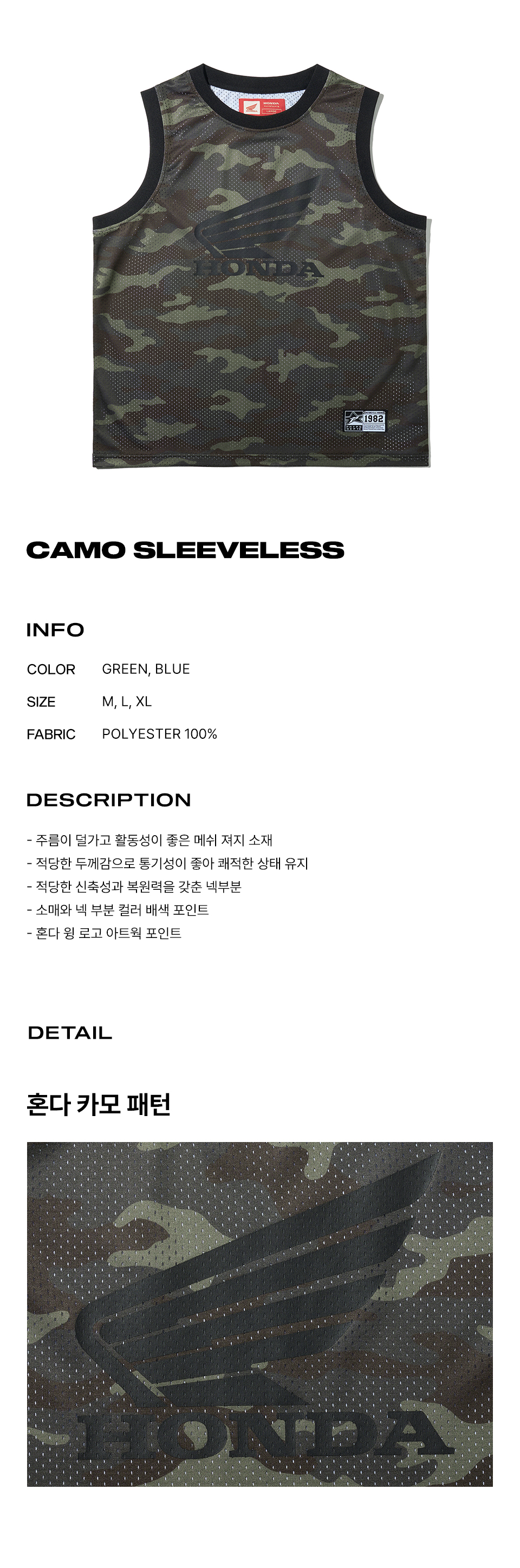혼다 오리지널 윙 로고 메쉬 슬리브리스 카모 그린