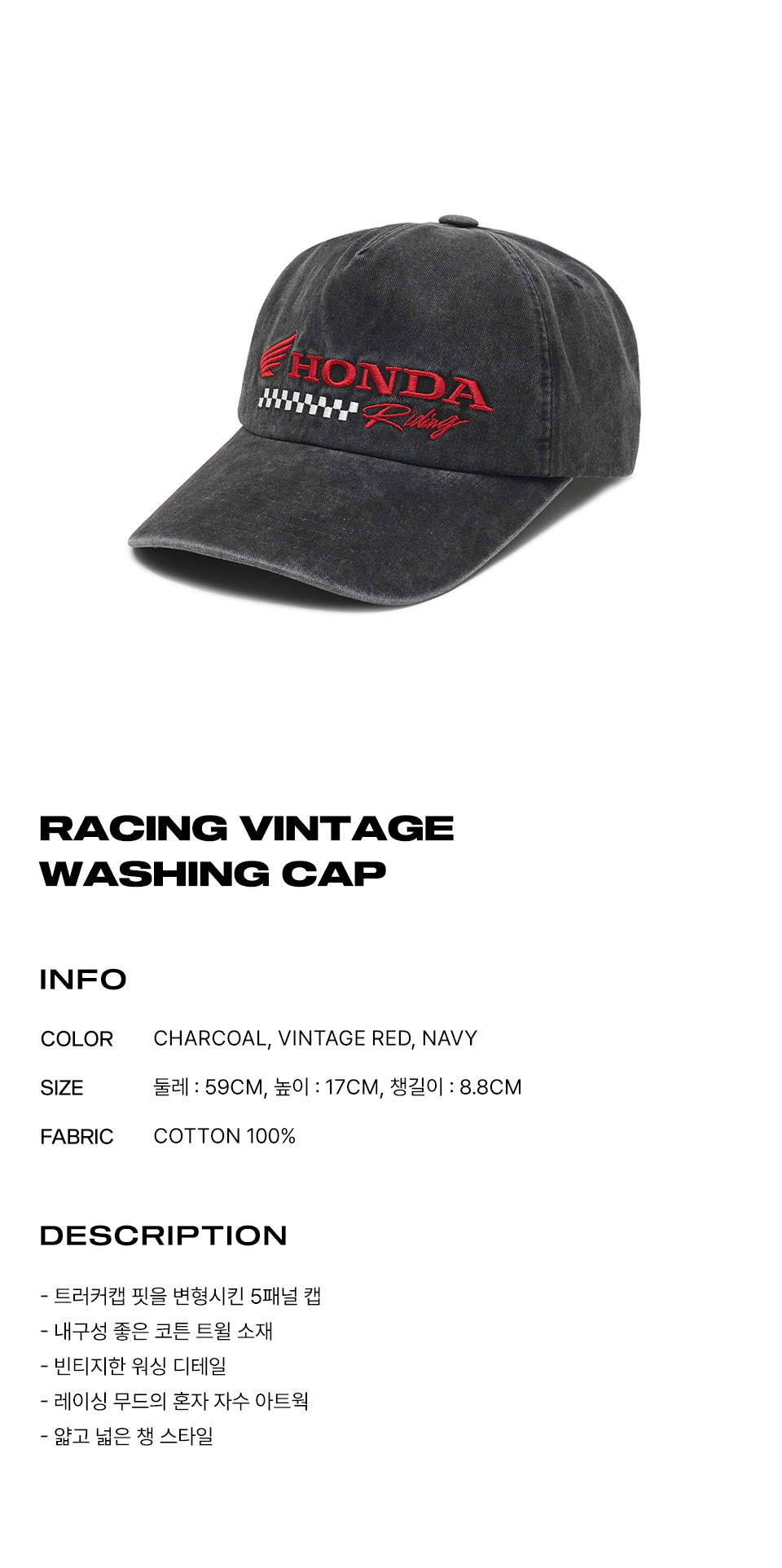 혼다 레이싱 빈티지 워싱 캡 차콜