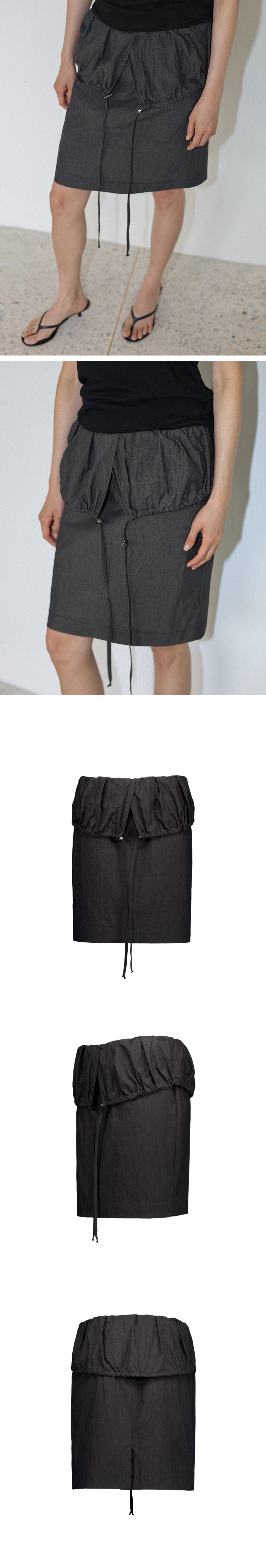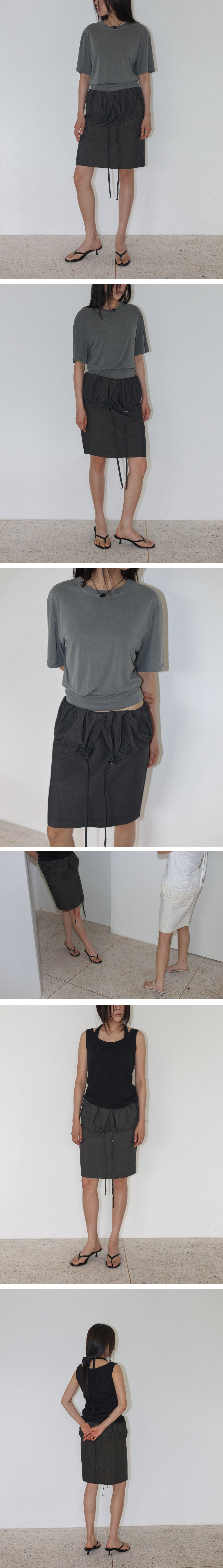 더블레이어드 디테일 미디 스커트 얇고 시원한 코튼 나일론 원단 스토퍼로 스트링 조절 허리 밴드로 다양한 사이즈 커버가능