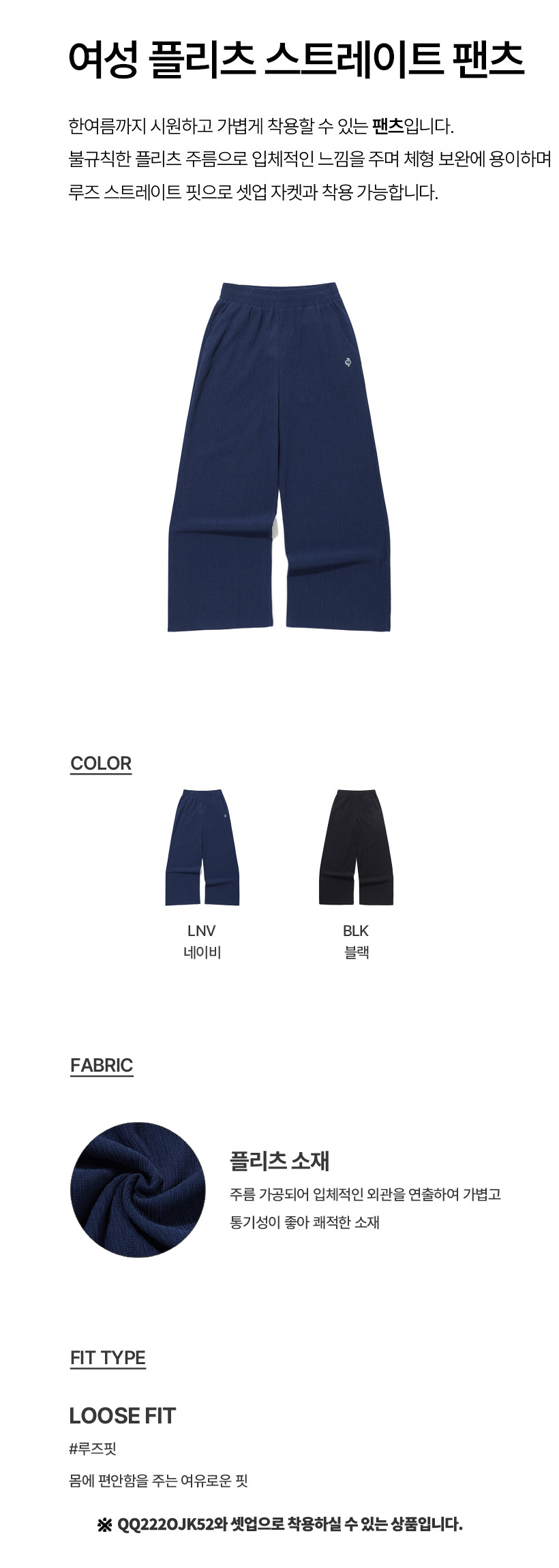 르꼬끄 스포르티브 여성 플리츠 스트레이트핏 팬츠 - 블랙(QQ222OPT52)