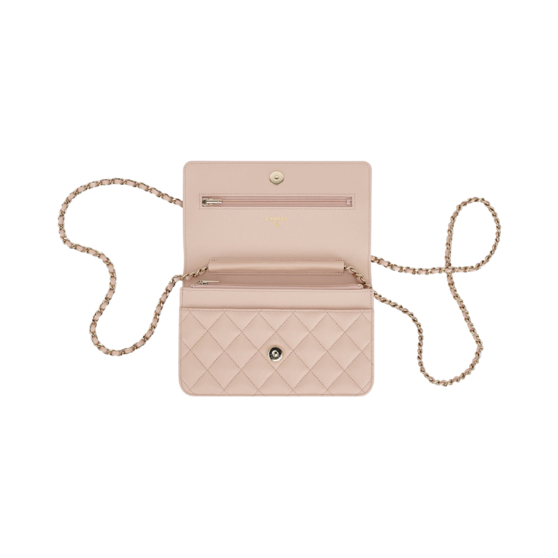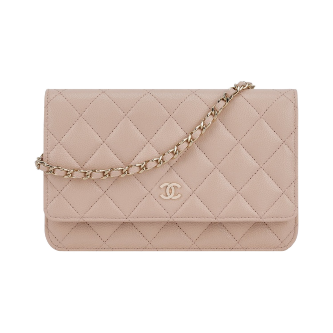샤넬 클래식 체인 지갑 그레인드 카프스킨 & 골드 메탈 라이트 베이지