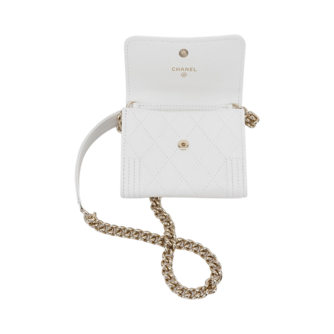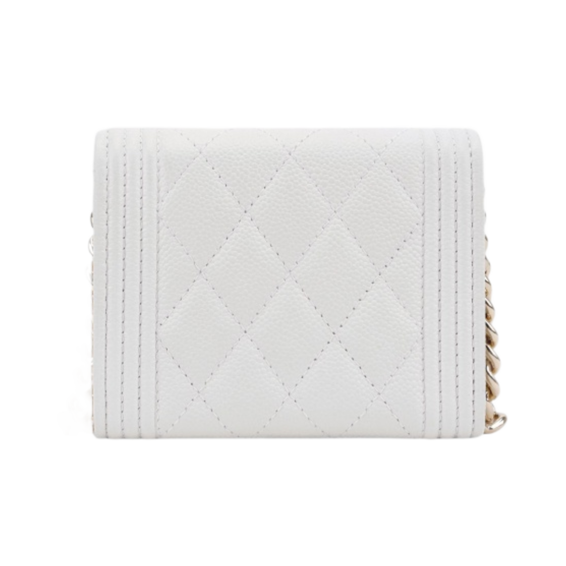 샤넬 보이 샤넬 플랩 체인 코인 지갑 그레인드 카프스킨 & 골드 메탈 화이트