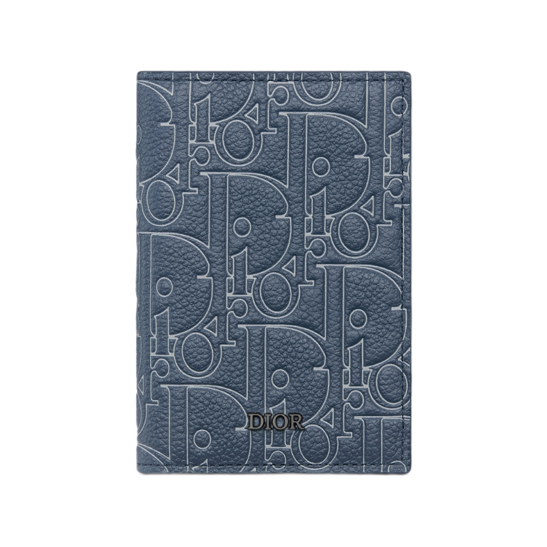 디올 버티컬 바이폴드 카드 홀더 디올 그래비티 아웃라인 레더 네이비 블루