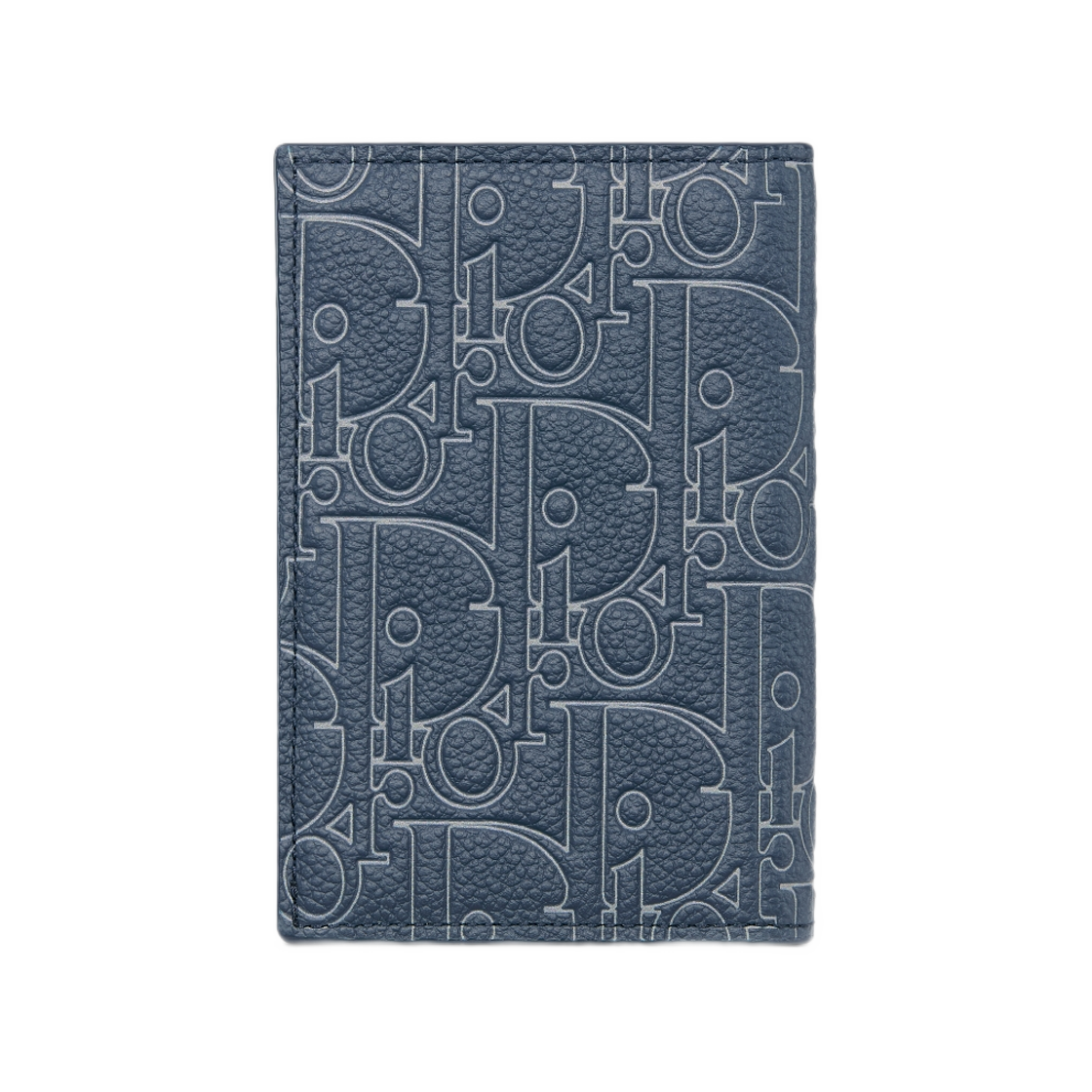 Dior Vertical Bifold Card Holder Dior Gravity Outline Leather Navy Blue