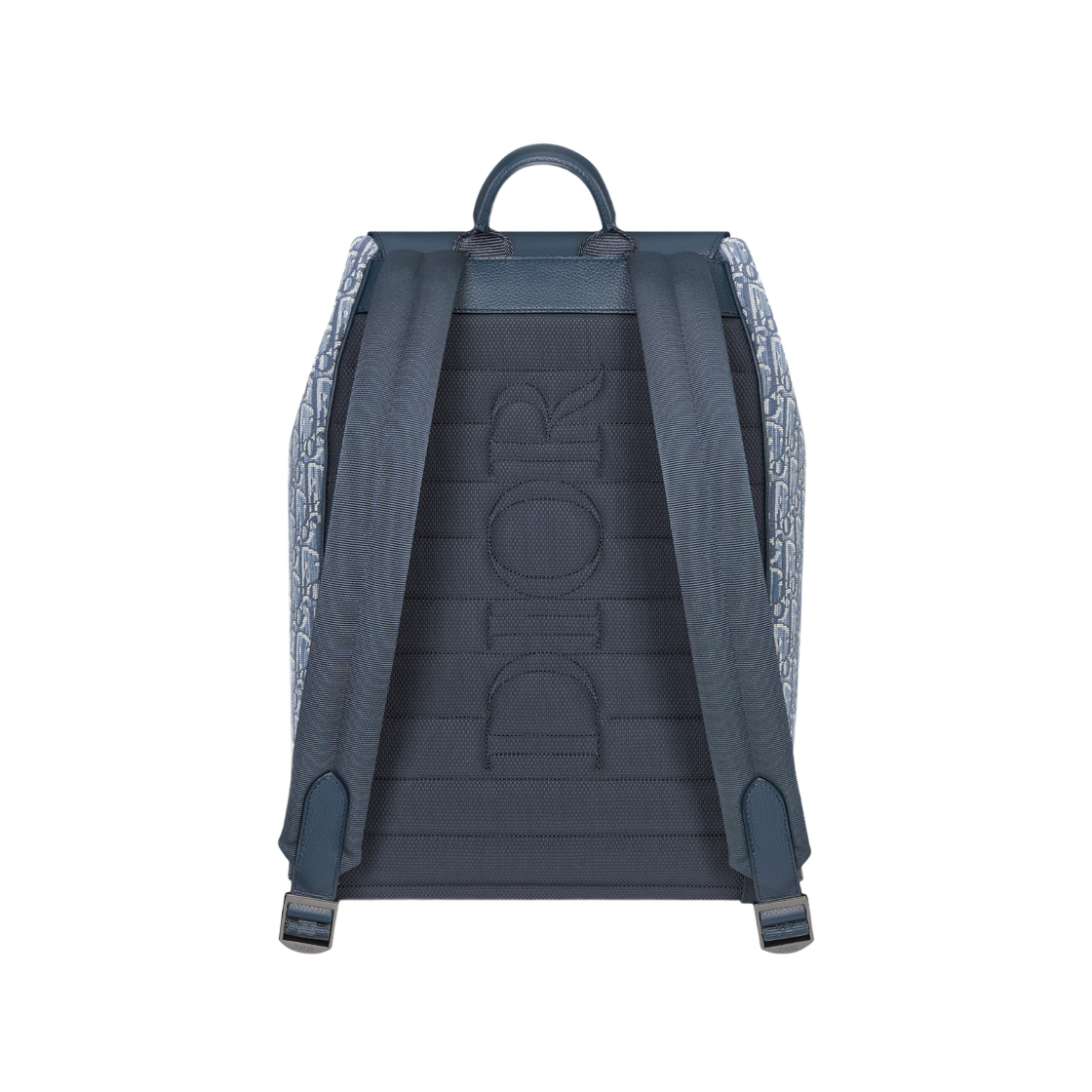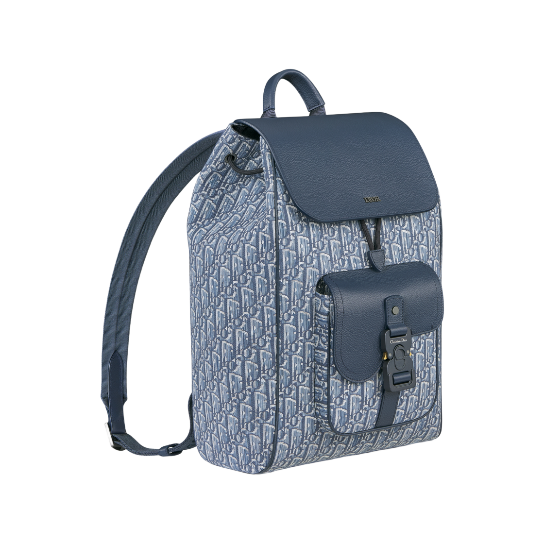 디올 새들 백팩 플랩 디올 오블리크 자카드 앤 그레인드 카프스킨 블루