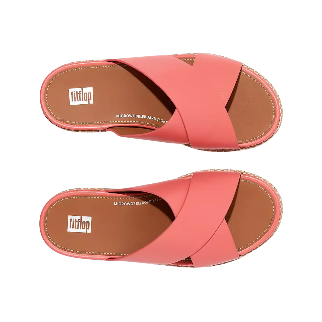 (W) 핏플랍 엘로이즈 에스파드리유 레더 웨지 크로스 슬라이드 로지 코랄