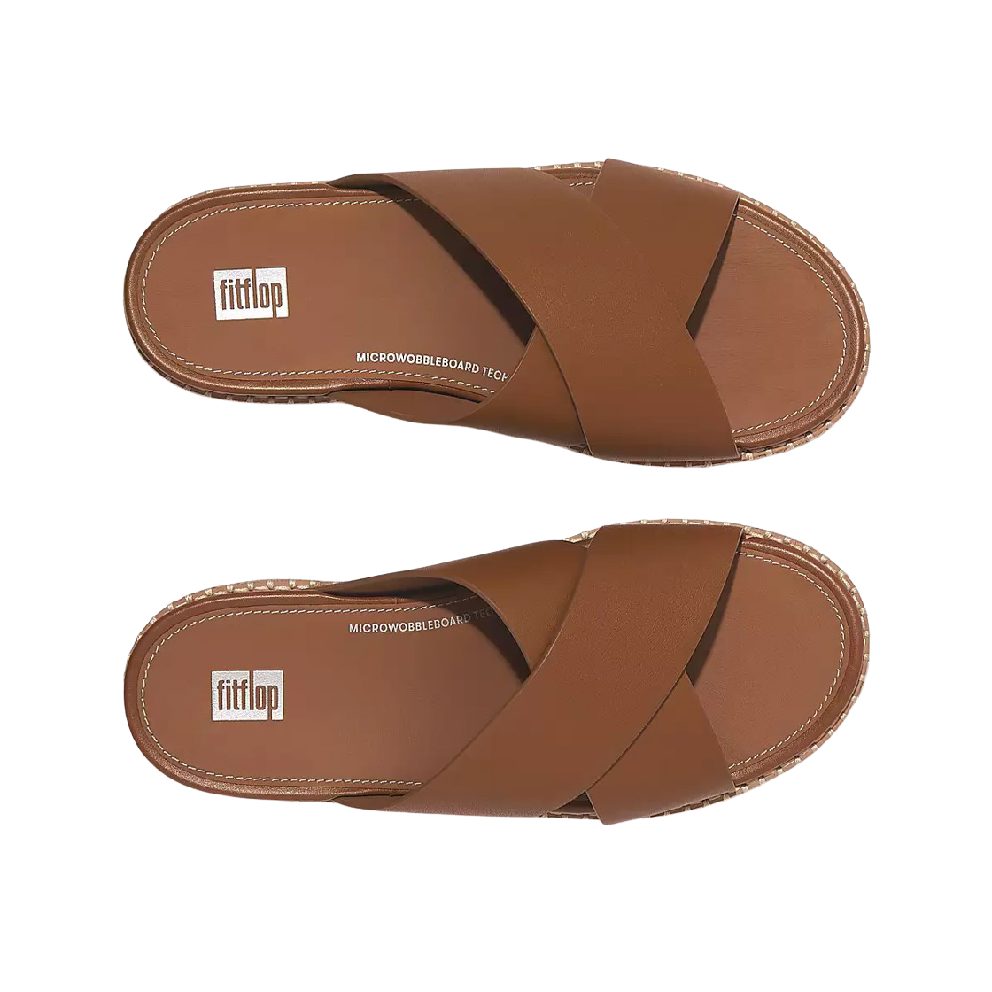 (W) 핏플랍 엘로이즈 에스파드리유 레더 웨지 크로스 슬라이드 라이트 탄