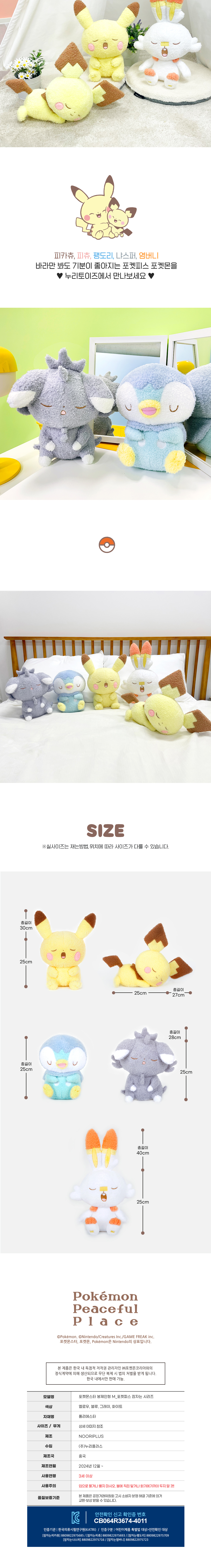 누리토이즈 포켓피스 인형 M 잠자는 피카츄