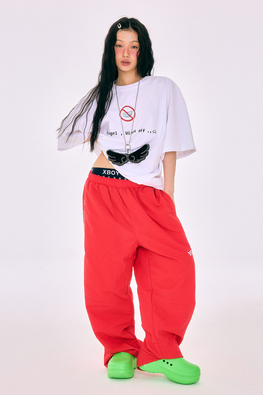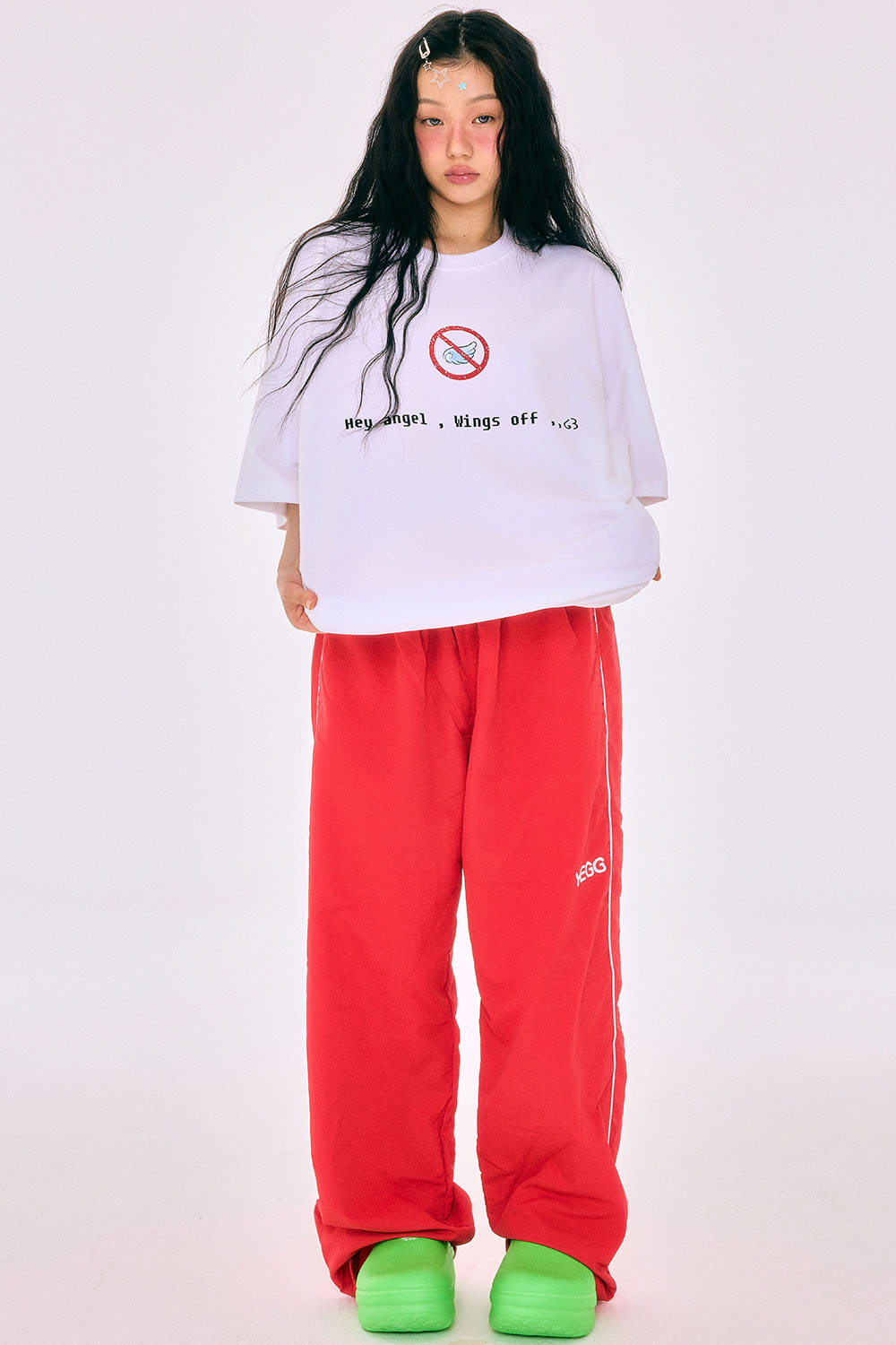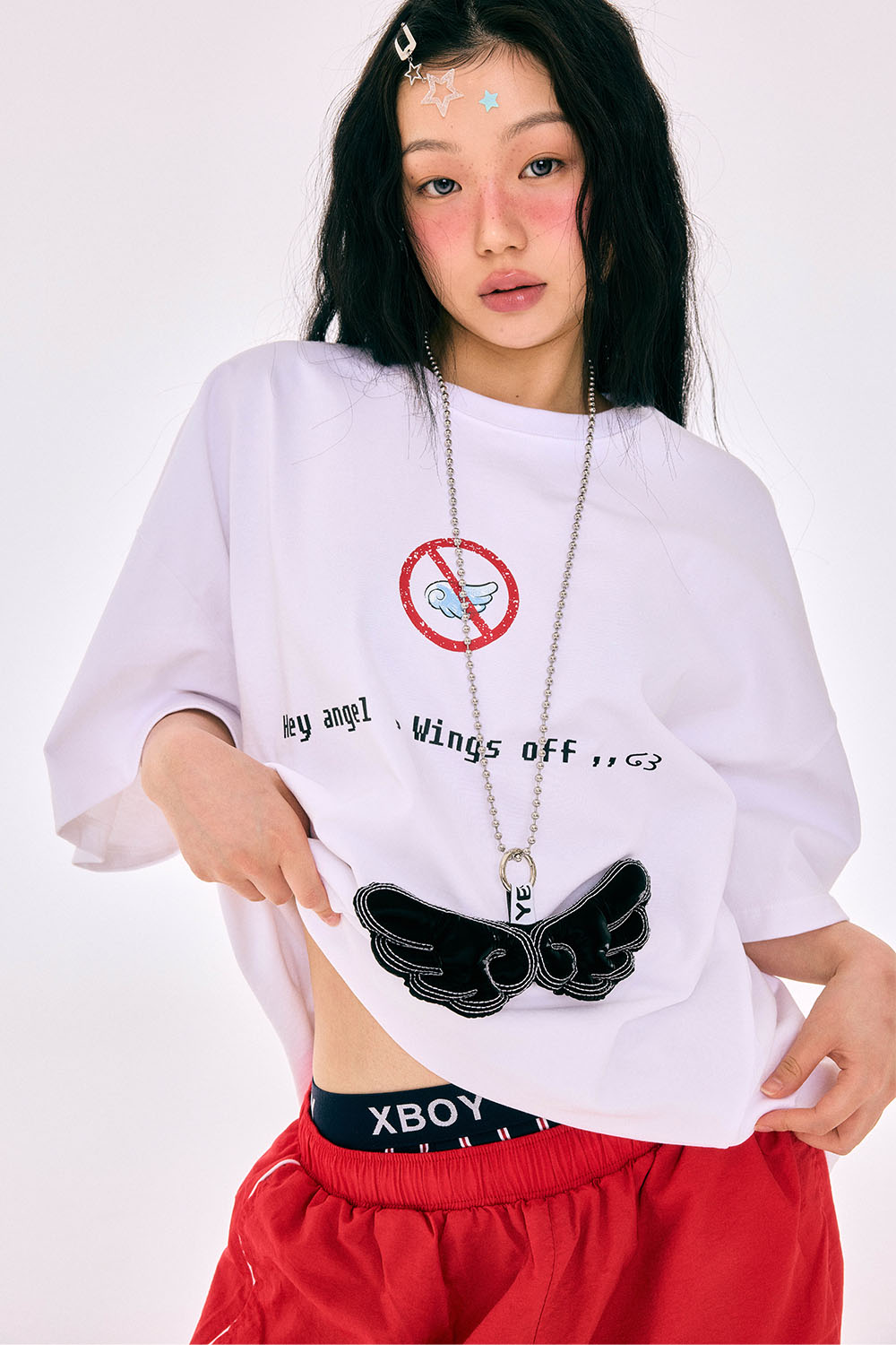 "Hey Angel, Wings Off" 너는 원래부터 천사였어. 그저 잠깐 날개를 숨기고 있었을 뿐. 그 메시지를 그대로 담은, 예그의 2025 핫썸머 시즌 티셔츠입니다. “Wings Off”라는 메세지 아래, 날개를 펼치고 싶은 충동을 잠시 눌러두라는 위트 있는 경고 그래픽이 더해져 예그 특유의 직설적이면서도 유머러스한 메시지를 전합니다. 탄탄하면서도 부드러운 코튼 100% 소재로 제작되었으며, 여유로운 오버핏 실루엣과 프리사이즈 구성으로 누구나 편안하게 착용할 수 있습니다. 감각적인 텍스트 그래픽과 밑단의 레드 라벨 디테일이 예그만의 유니크한 분위기를 더해줍니다.
