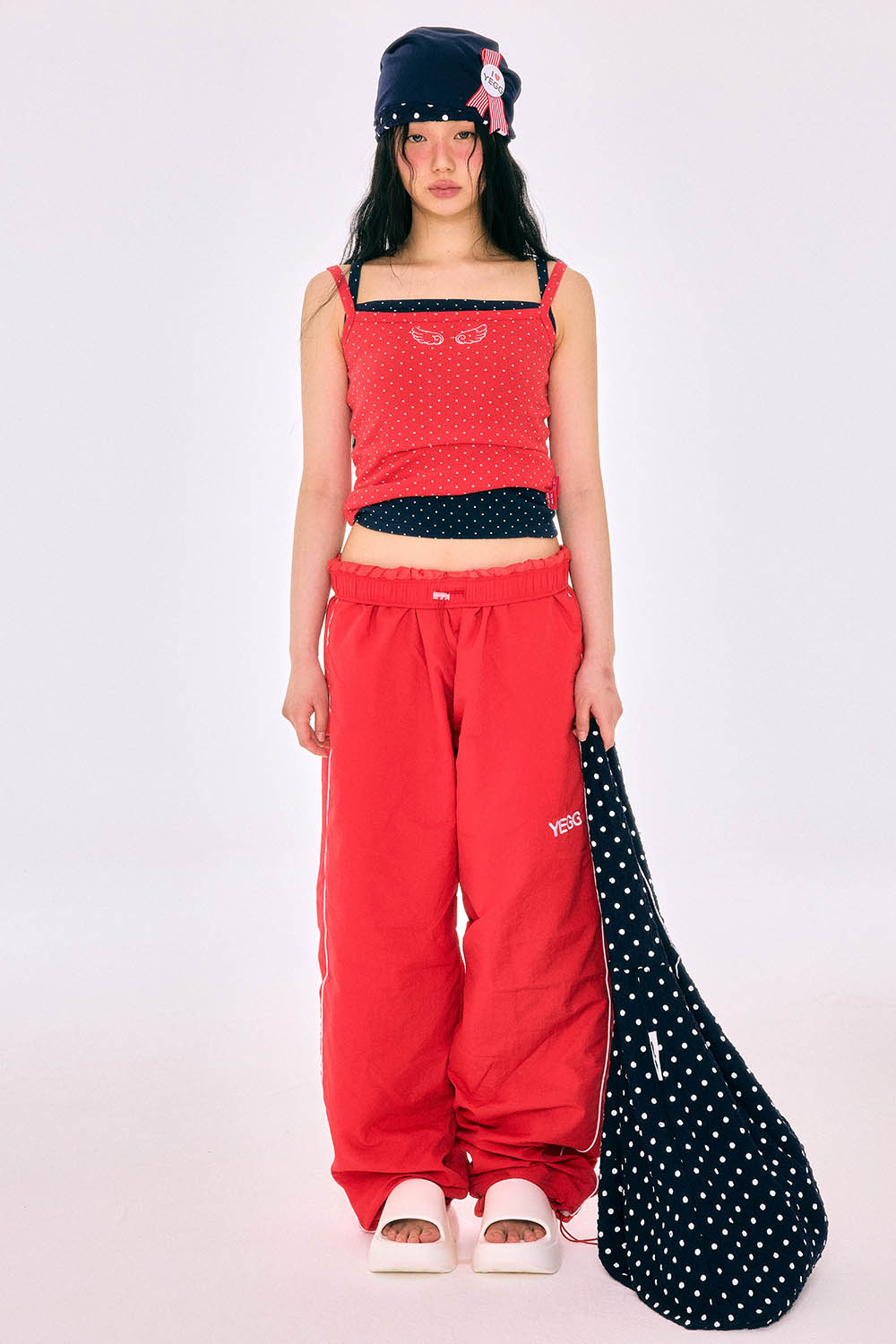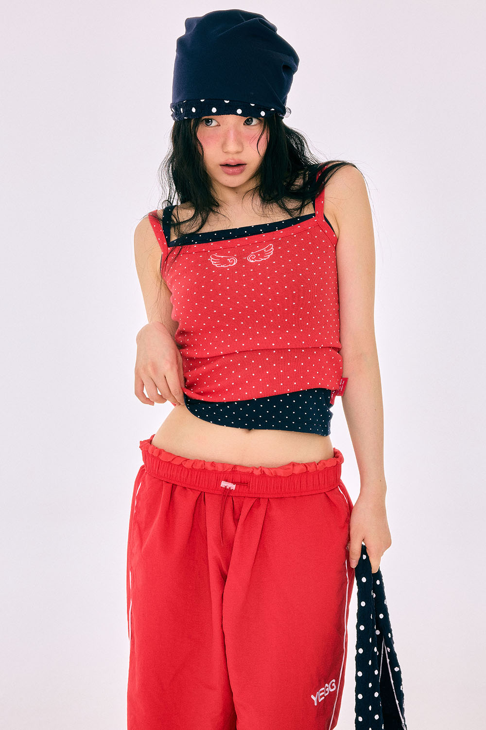 작고 촘촘한 도트 패턴과가슴 중앙에 수놓인 윙 자수가 예그 특유의 디테일을 보여주는 슬림핏 나시입니다. 부드러운 골지 텍스처에 가볍게 밀착되는 신축성이 더해져 단독 착용은 물론, 레이어드용으로도 좋습니다. 부유방을 자연스럽게 커버해주는 실루엣인 장점이 있습니다. 크롭기장이 쿨하고 자유로운 무드를 완성합니다.