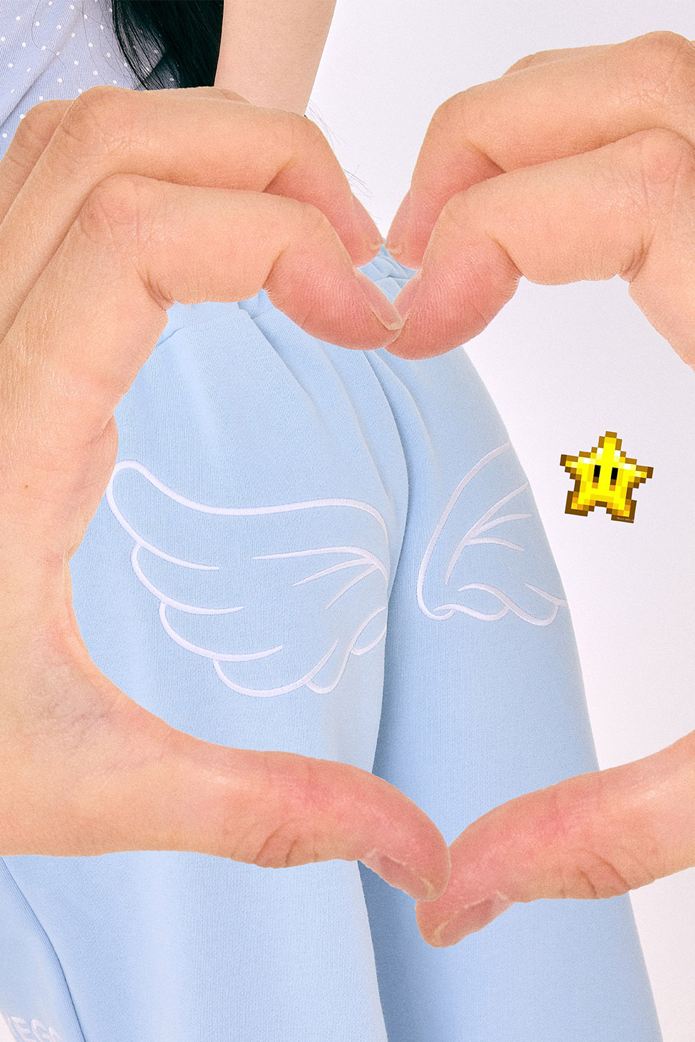 사계절 내내 착용 가능한 가벼운 소재와 부드러운 터치감이 특징인 팬츠입니다. 전면에는 예그 로고 자수 디테일을, 후면 힙 부분에는 날개 모티프 자수를 더해 예그 특유의 위트를 담았습니다. 키치하고 유니크한 실루엣의 wing pants 디자인은 오직 예그에서만 만나볼 수 있는 시그니처 아이템입니다.