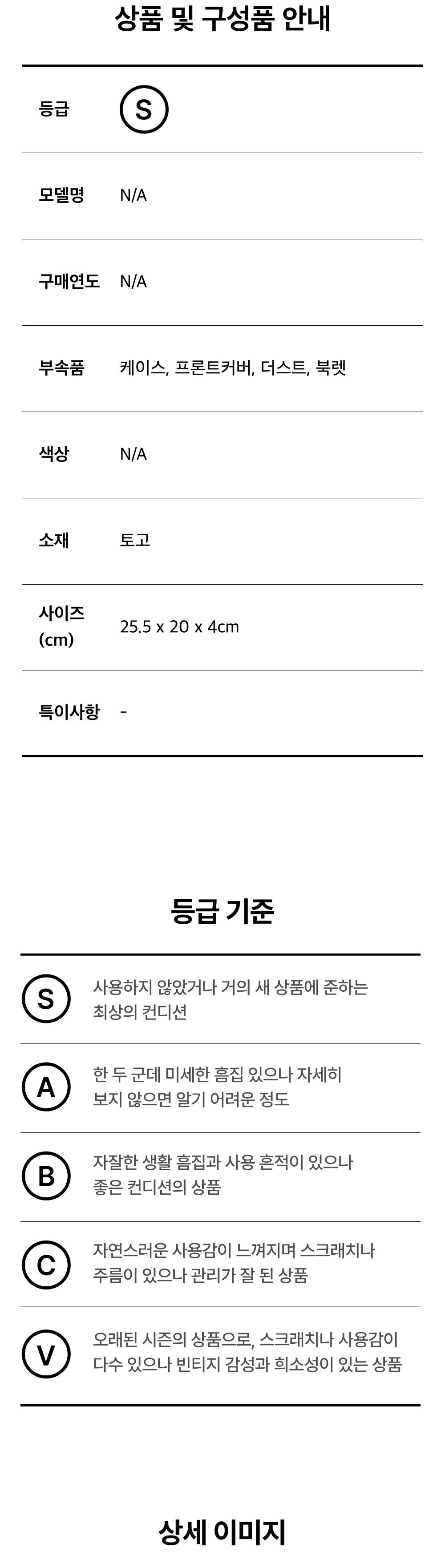 모든 상품(가죽, 의류, 잡화, 슈즈 등)은 사용자의 사용방법과 환경에 따라 변형, 변색이 될 수 있으니 반드시 취급 라벨에 표시된 관리 안내를 따르시길 권장 드립니다. 이는 정도의 차이가 있으며 과도한 체열과 땀, 습기, 빛, 마찰은 제품의 손상 및 변형을 일으킬 수 있으므로 주의하시길 바랍니다.