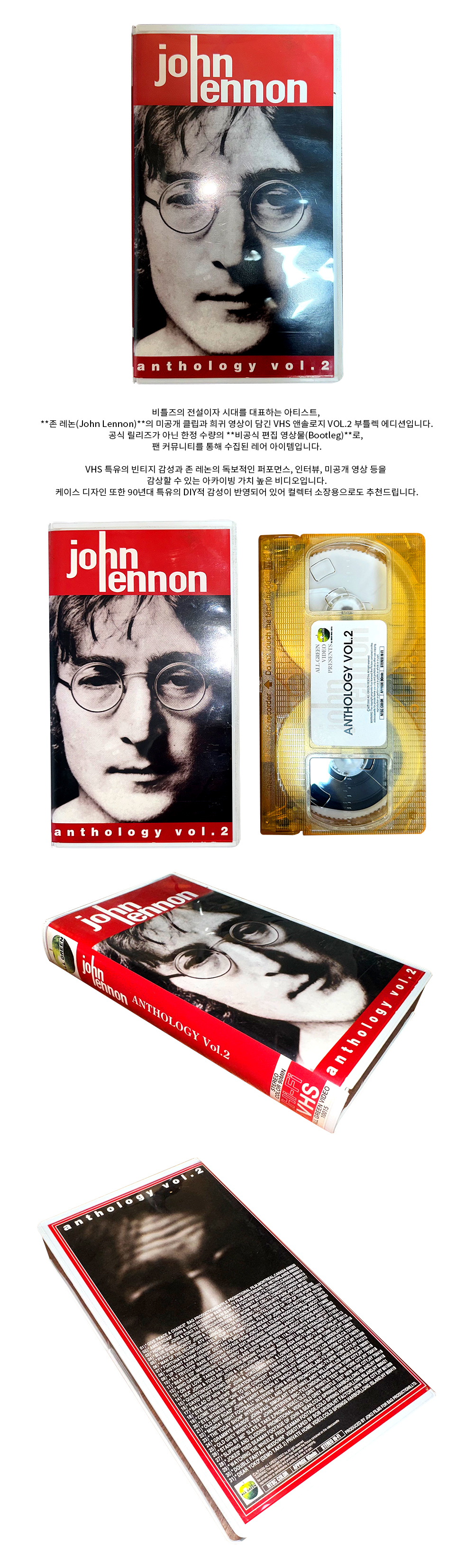 비틀즈의 전설이자 시대를 대표하는 아티스트, **존 레논(John Lennon)**의 미공개 클립과 희귀 영상이 담긴 VHS 앤솔로지 VOL.2 부틀렉 에디션입니다. 공식 릴리즈가 아닌 한정 수량의 **비공식 편집 영상물(Bootleg)**로, 팬 커뮤니티를 통해 수집된 레어 아이템입니다. VHS 특유의 빈티지 감성과 존 레논의 독보적인 퍼포먼스, 인터뷰, 미공개 영상 등을 감상할 수 있는 아카이빙 가치 높은 비디오입니다. 케이스 디자인 또한 90년대 특유의 DIY적 감성이 반영되어 있어 컬렉터 소장용으로도 추천드립니다.