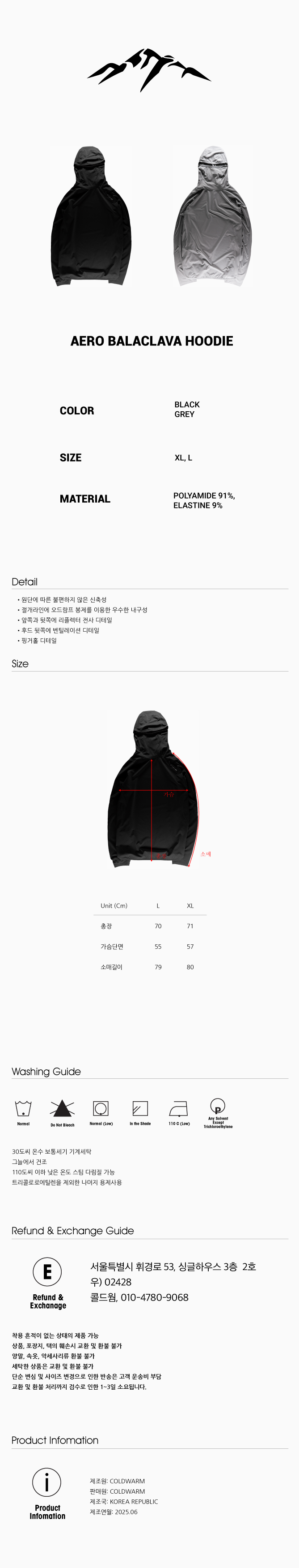 콜드웜 에어로 바라클라바 후디 블랙
