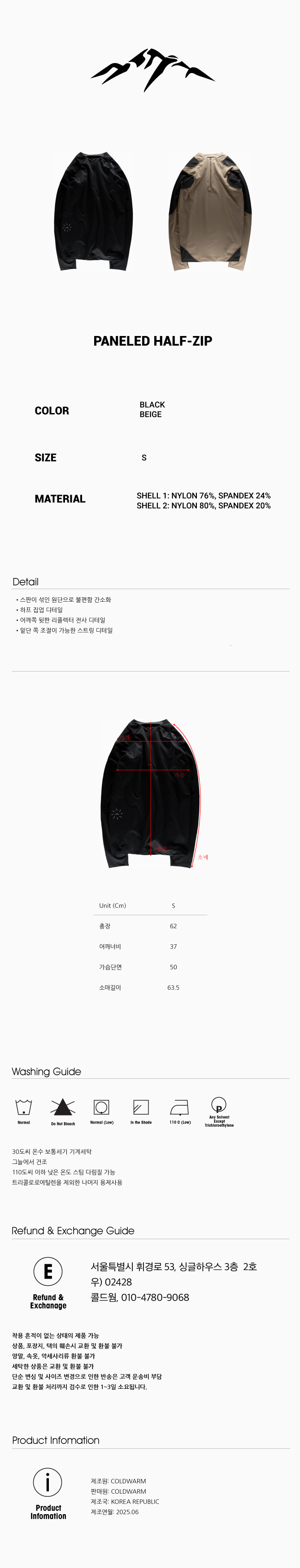 콜드웜 패널드 하프 집 블랙/블랙 스몰핏