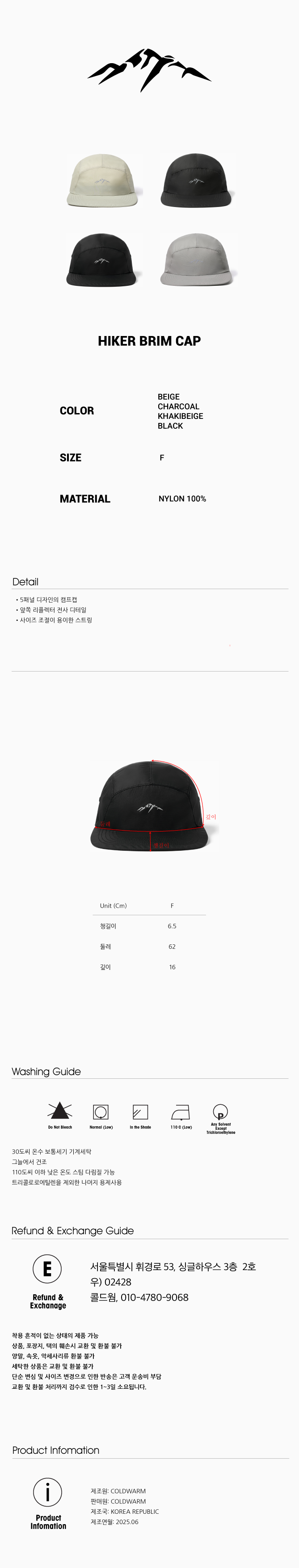 콜드웜 하이커 브림 캡 베이지