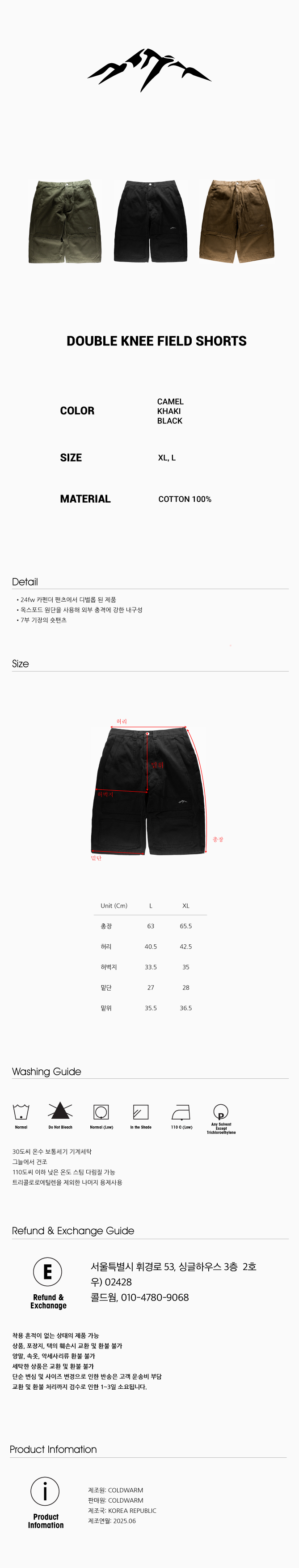 콜드웜 더블니 필드 숏츠 카멜