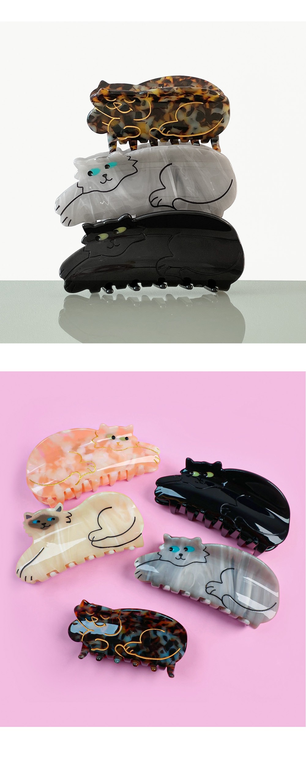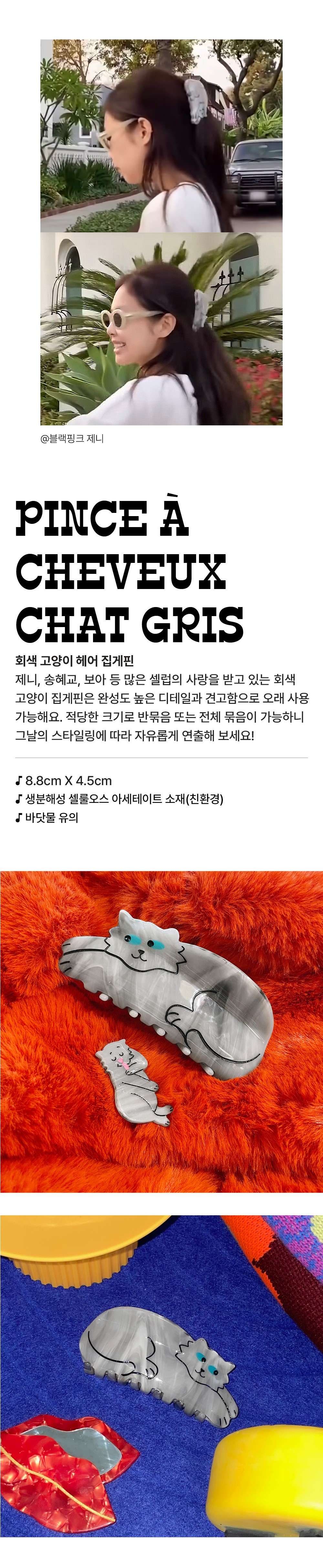 쿠쿠수제뜨 회색 고양이 헤어집게핀