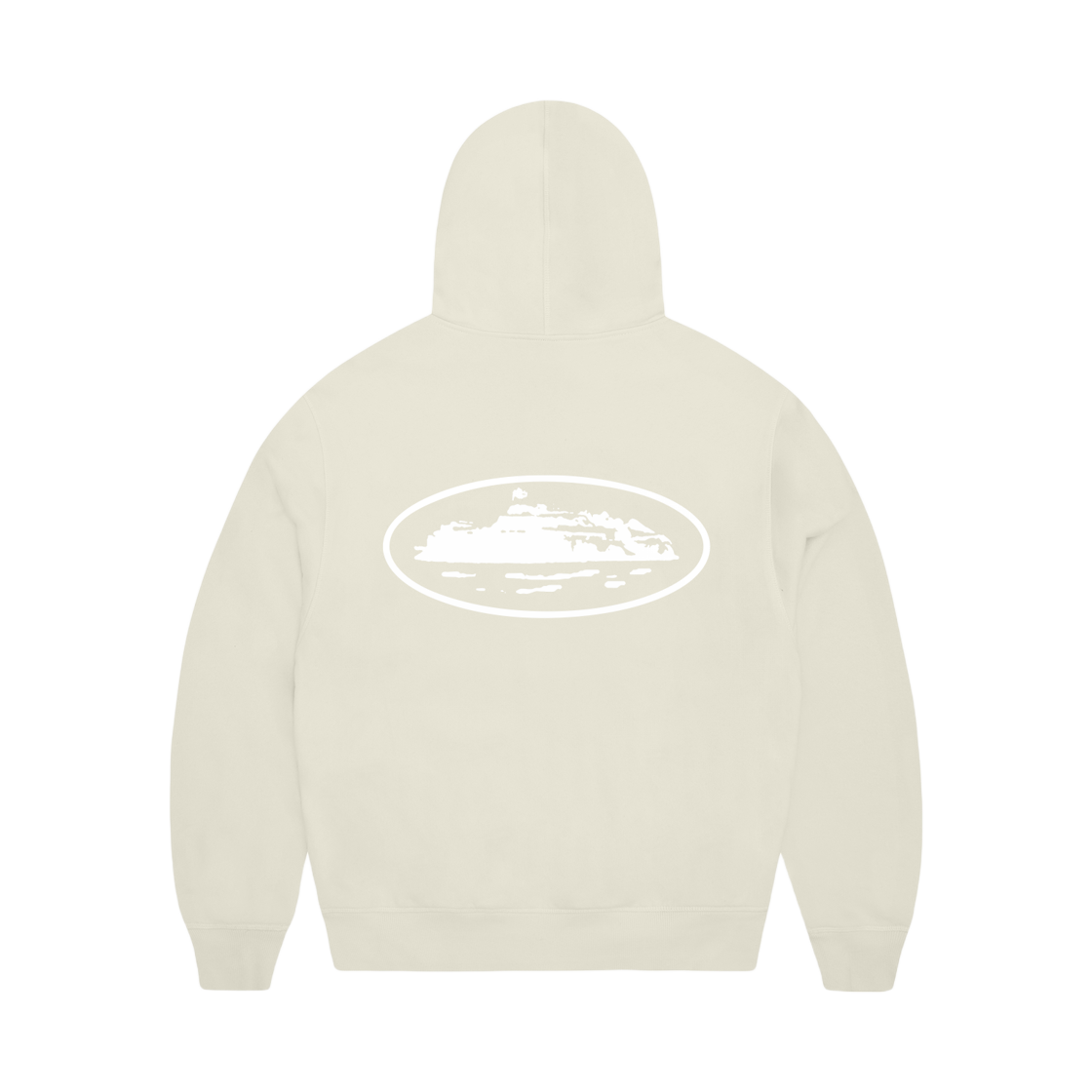 Corteiz Island Puff Print Zip Up Hoodie Off White