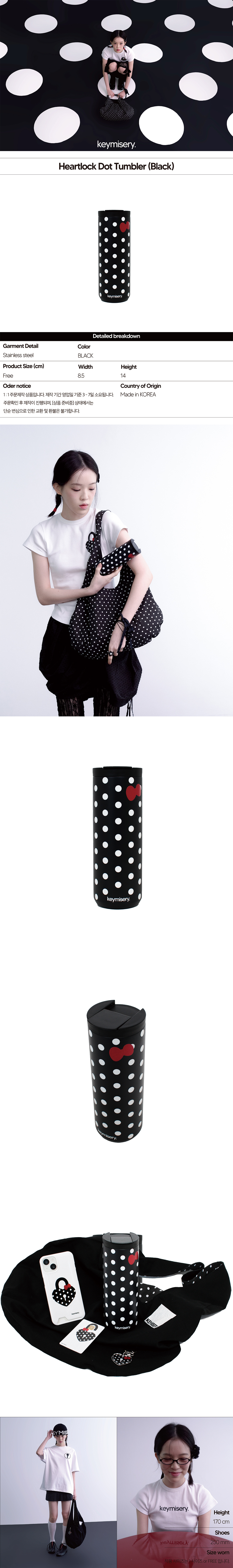 키미저리 하트락 도트 텀블러 블랙