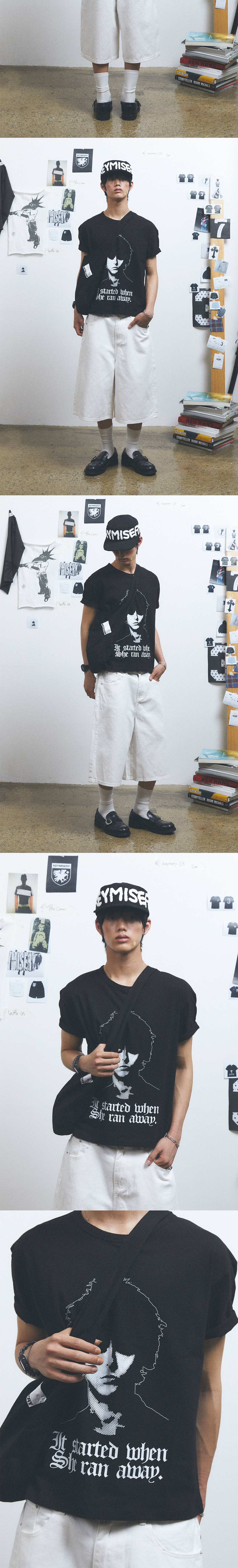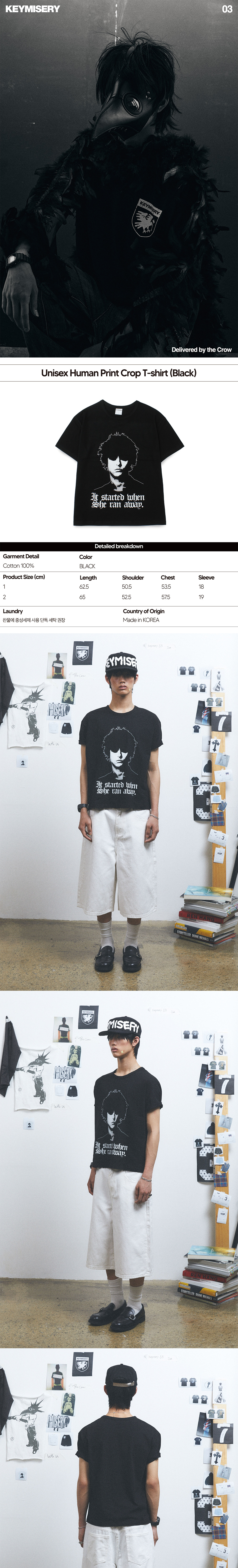 키미저리 휴먼 프린트 크롭 티셔츠 블랙
