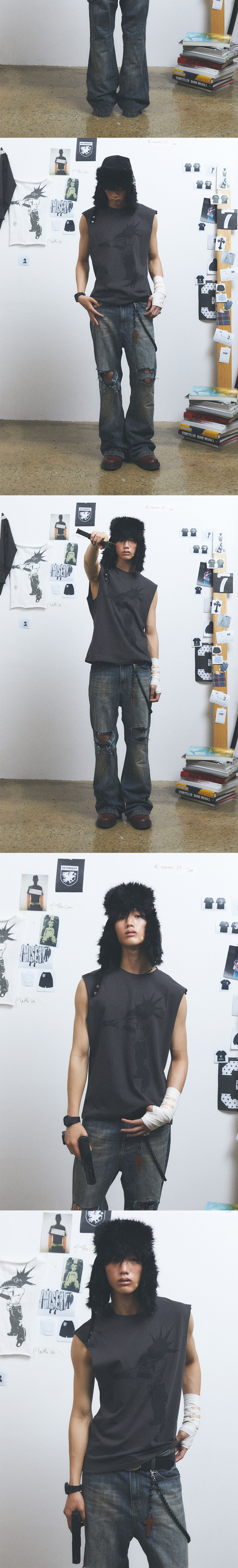키미저리 크로우 키스 크롭 슬리브리스 차콜