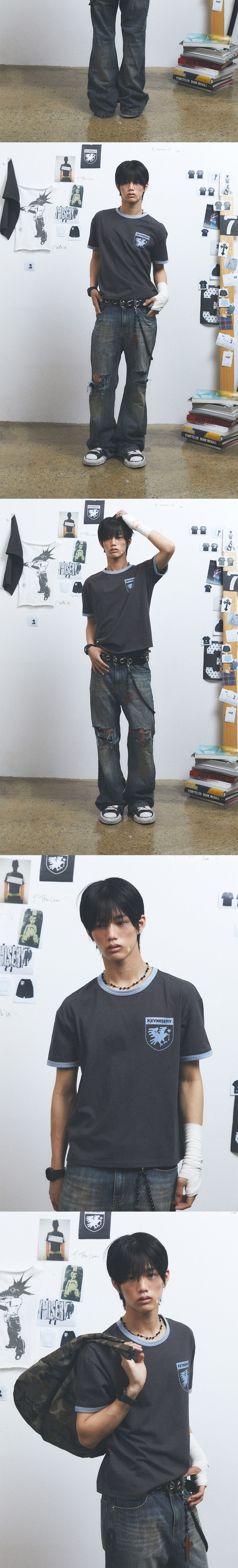 키미저리 크로우 키스 크롭 링거 티셔츠 차콜