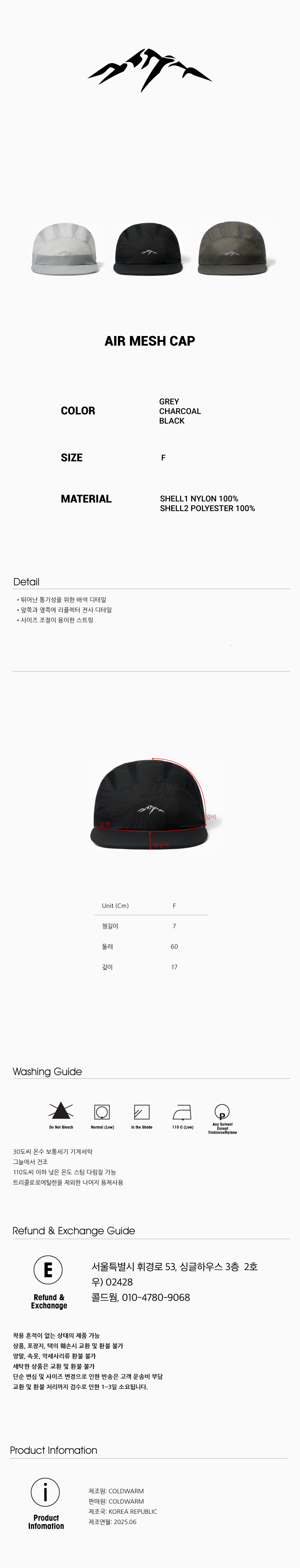콜드웜 에어매쉬 캡 그레이