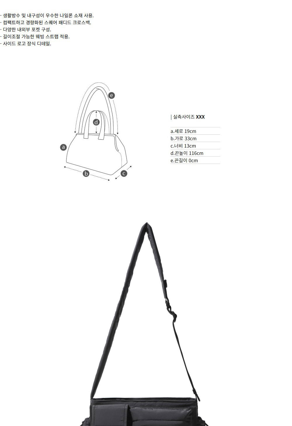 커스텀멜로우 나일론 크로스백 그레이