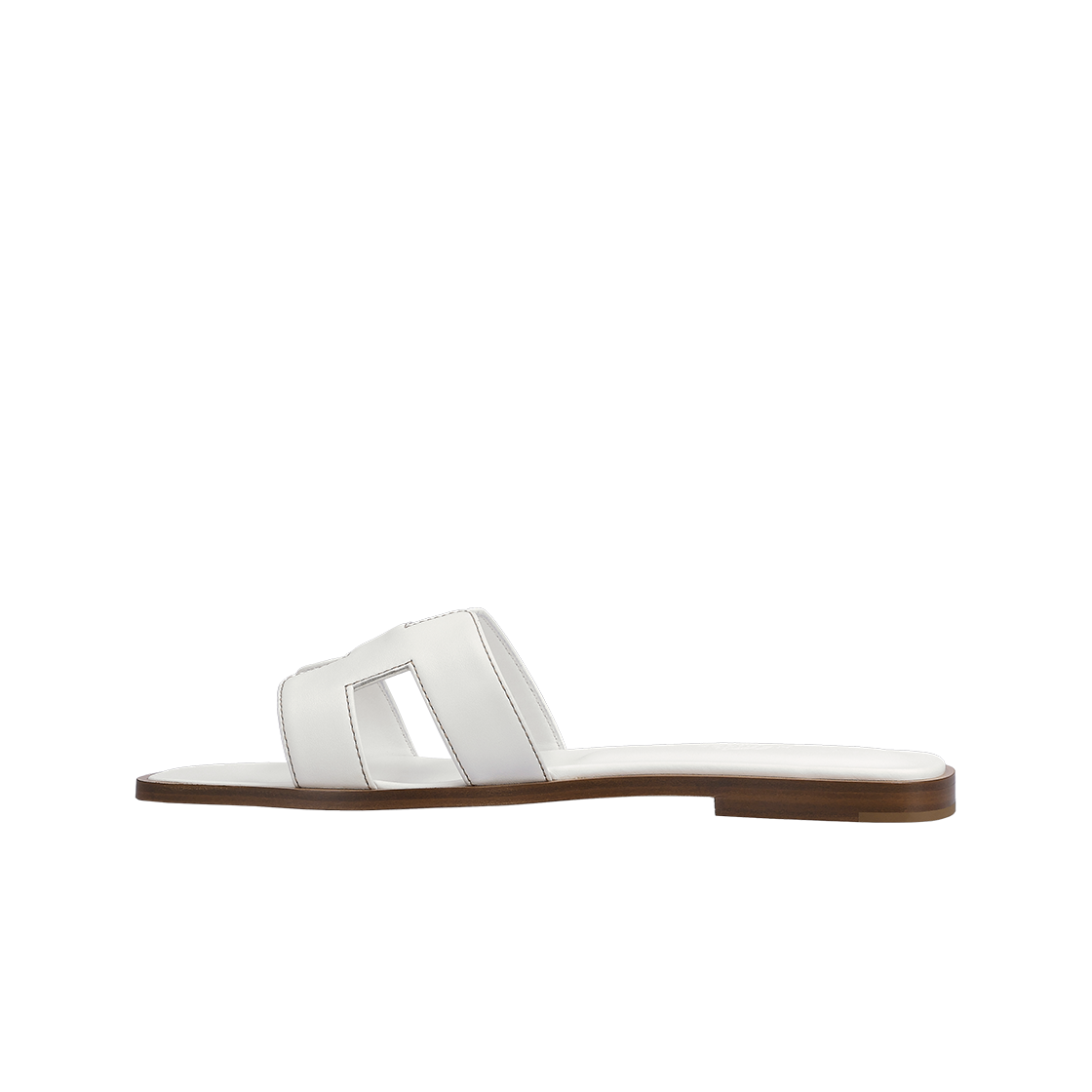 (W) Hermes Oran Sandal Calfskin & Blanc Piqures Havane