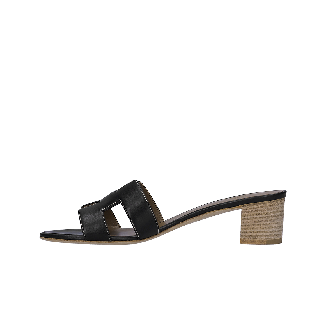 (W) Hermes Oasis Sandal Calfskin & Noir Piqures Ecrues