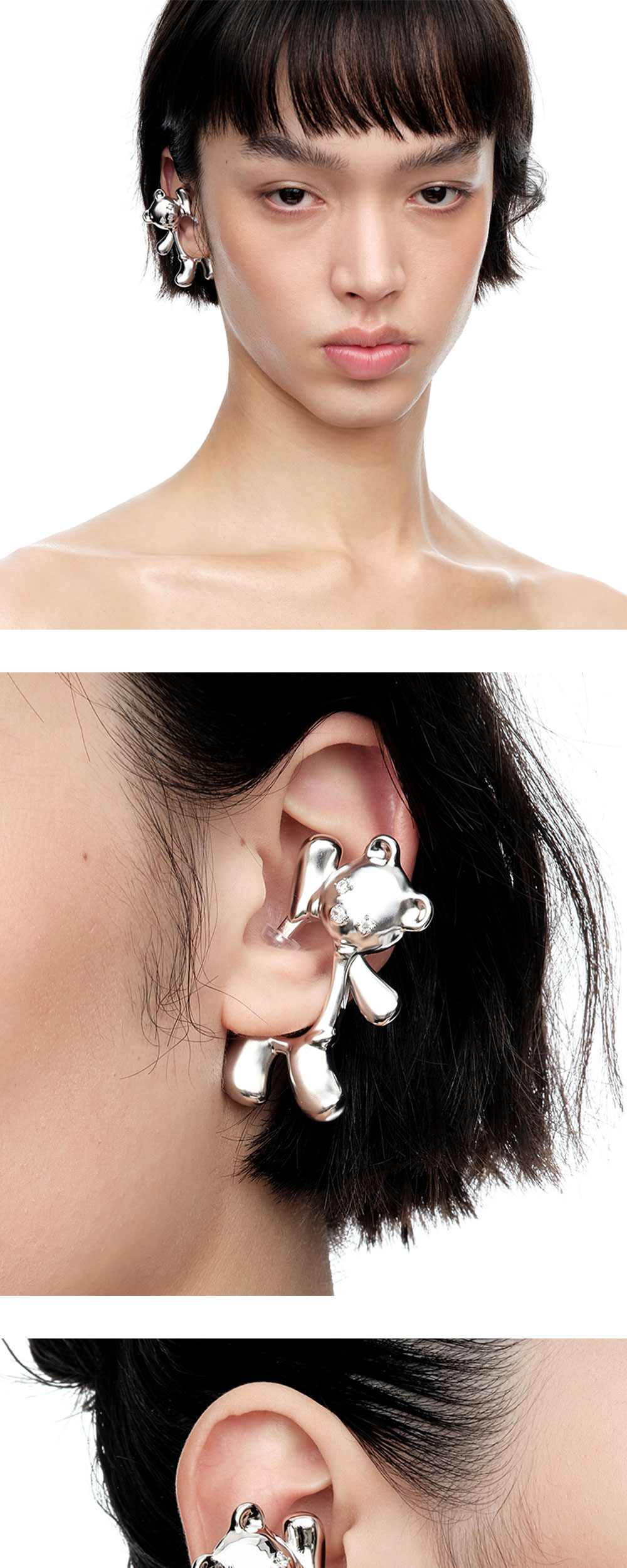 클립 형태의 입체감 있는 위민의 웨이빙 베어 스프링 클래스프 이어링 실버입니다. - 입체감 있는 웨이빙 베어 디자인 - 클립 형태의 귀걸이