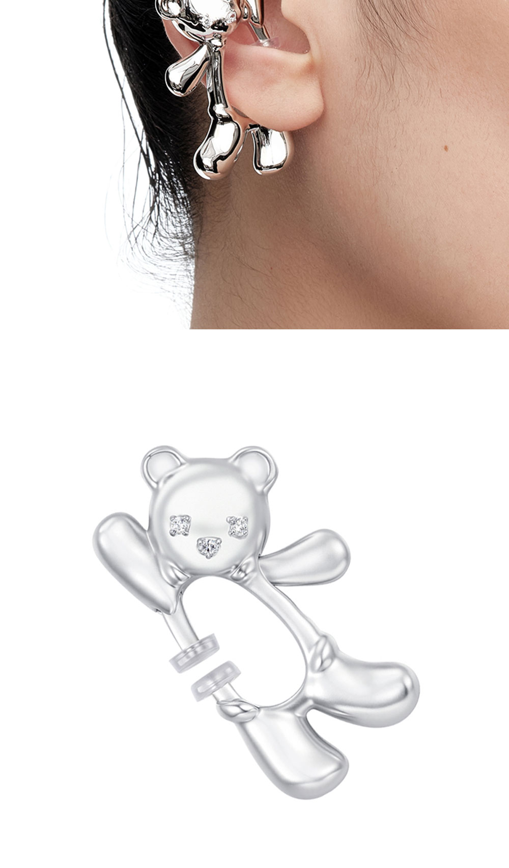 Yvmin Waving Bear Spring Clasp Earrings Silver - 25FW