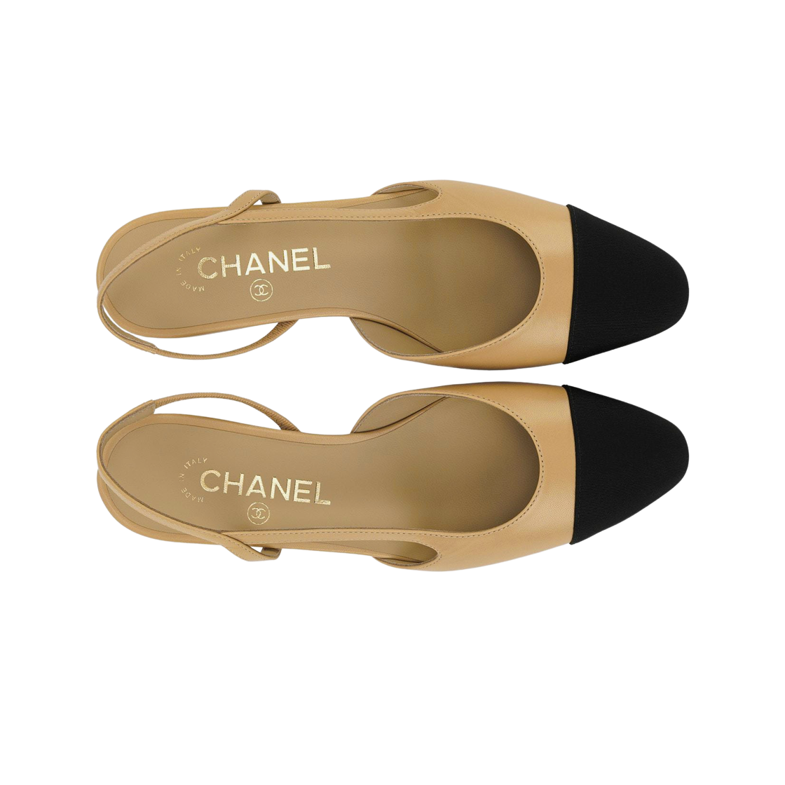 (W) Chanel Slingbacks Goatskin Grosgrain & Beige Black