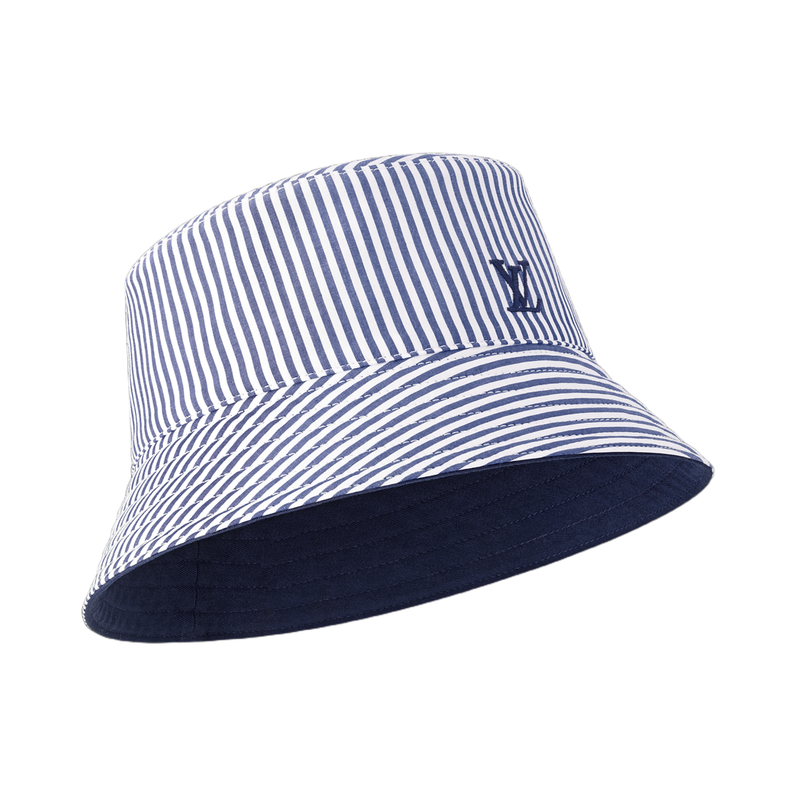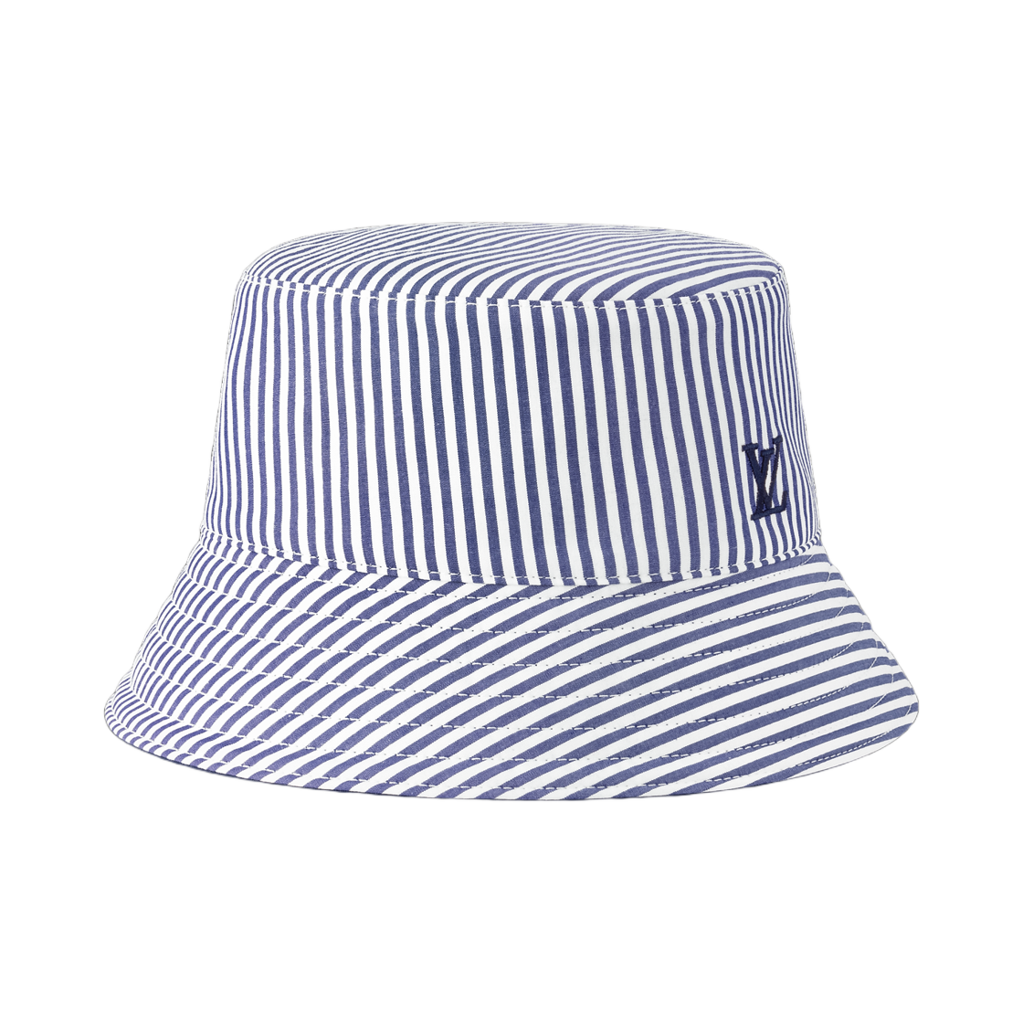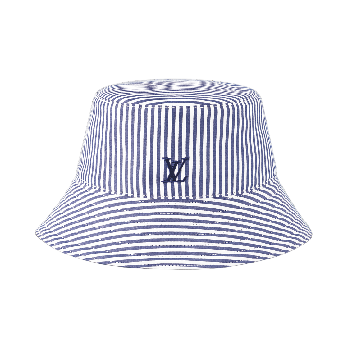(W) Louis Vuitton LV League Striped Bucket Hat Denim Blue