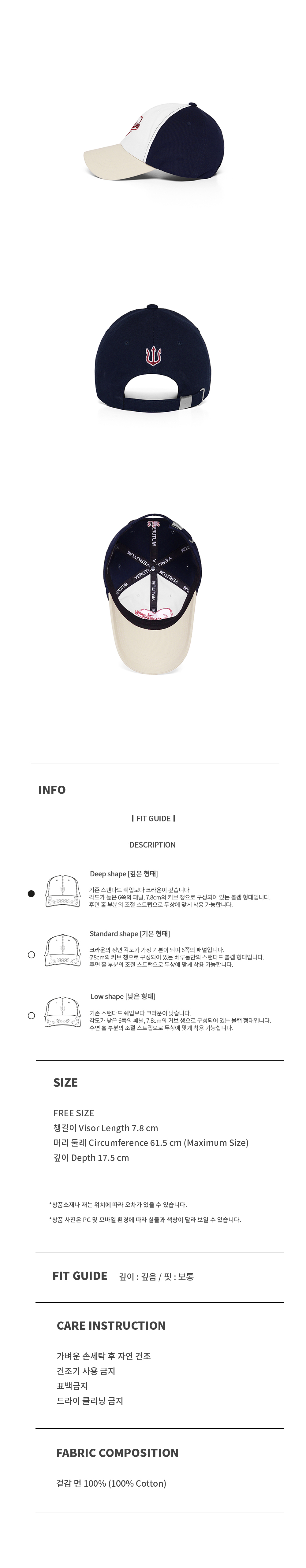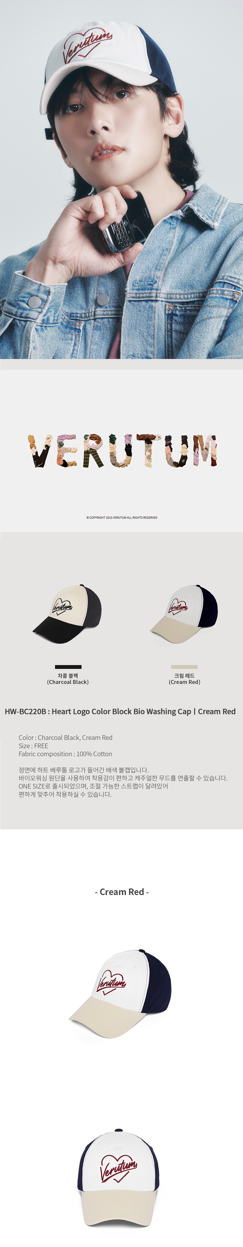 베루툼 하트 로고 컬러 블록 바이오 워싱 캡 크림 레드
